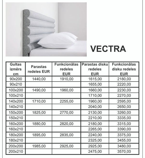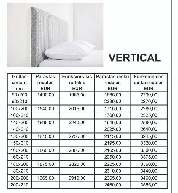 Uz augšu paceļama blīva ortopēdiska matrača redele. Gultu var izvēlēties ar vai bez veļas kastes.