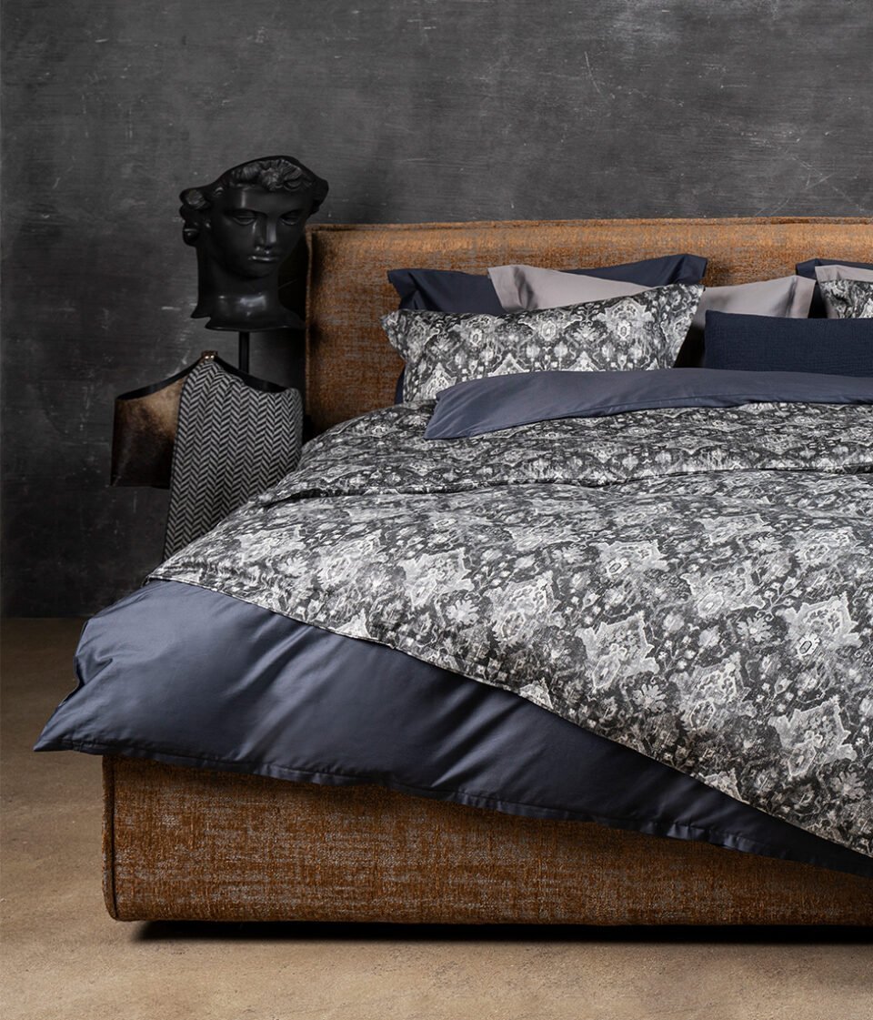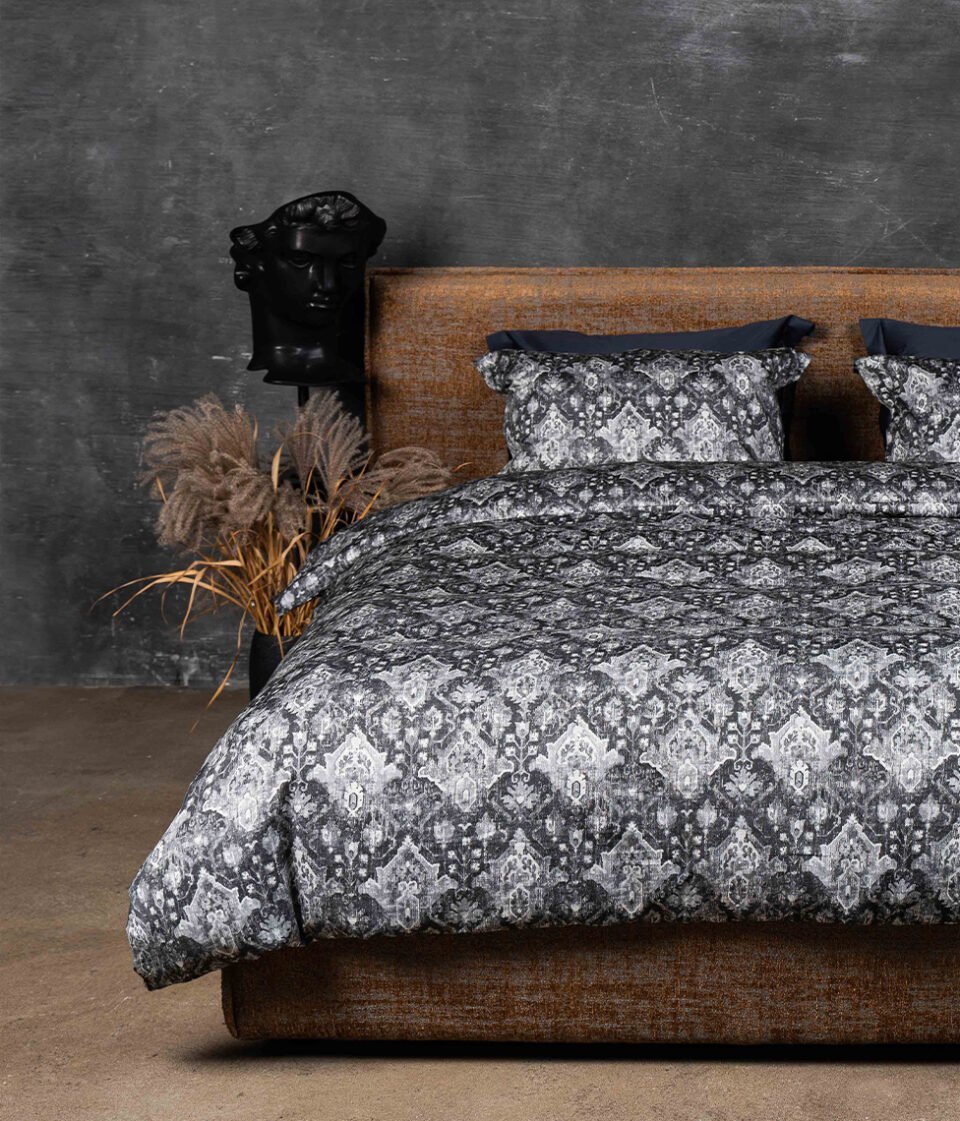 Šajā Decoflux gultas veļas komplektā apvienota melnā un pelēkā toņu kombinācija ar grezniem rakstiem. Tas ir lielisks veids, kā ienest karalisku noskaņu interjerā.