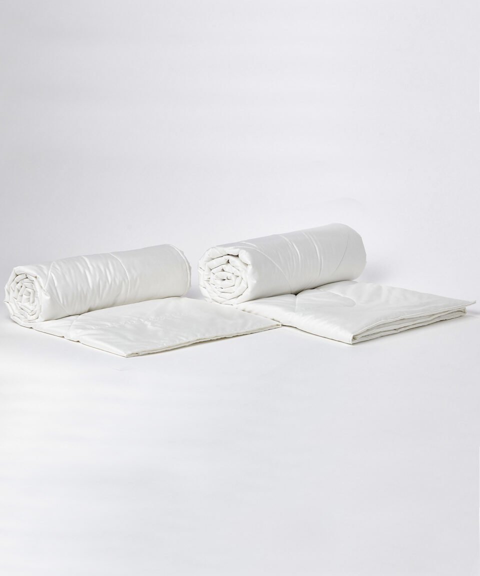 Viena plāna Light un viena vidēja Medium zīda sega, kas stūros sastiprinātas un kopā veido vienu siltu ziemas Warm segu.