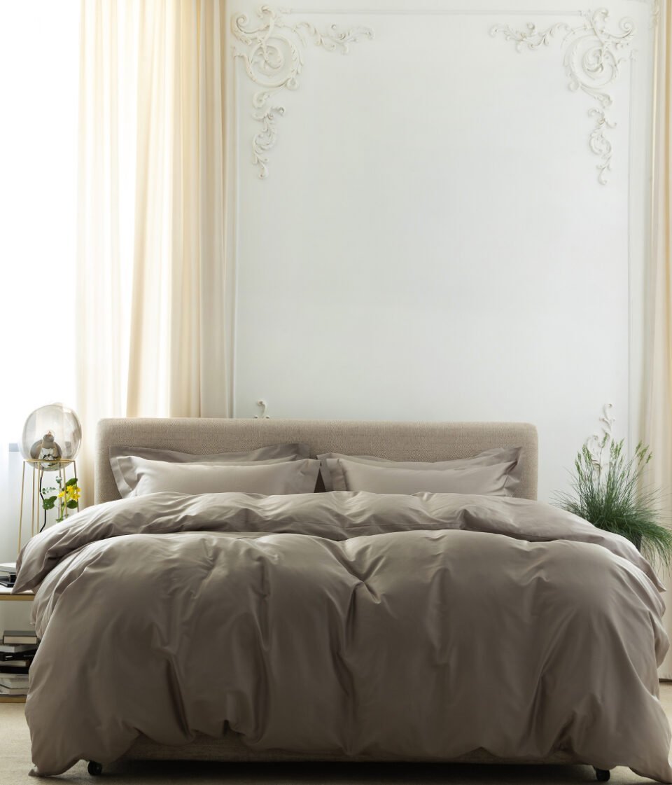 Maigi bēšas krāsas satīna gultas veļa guļamistabā ienesīs relaksācijas sajūtu. Lieliski piemērota jebkuram interjeram.