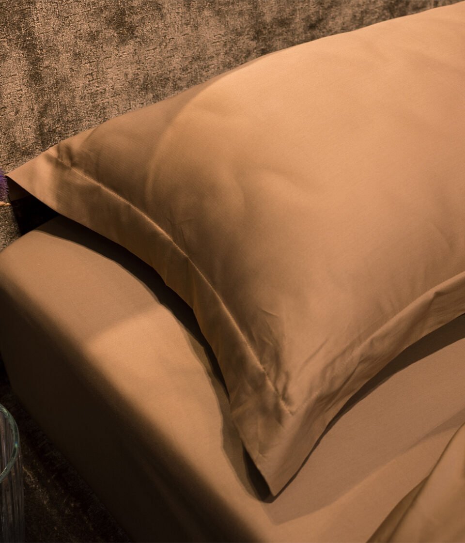 Vienkrāsains satīna gultas veļas komplekts Cinnamon