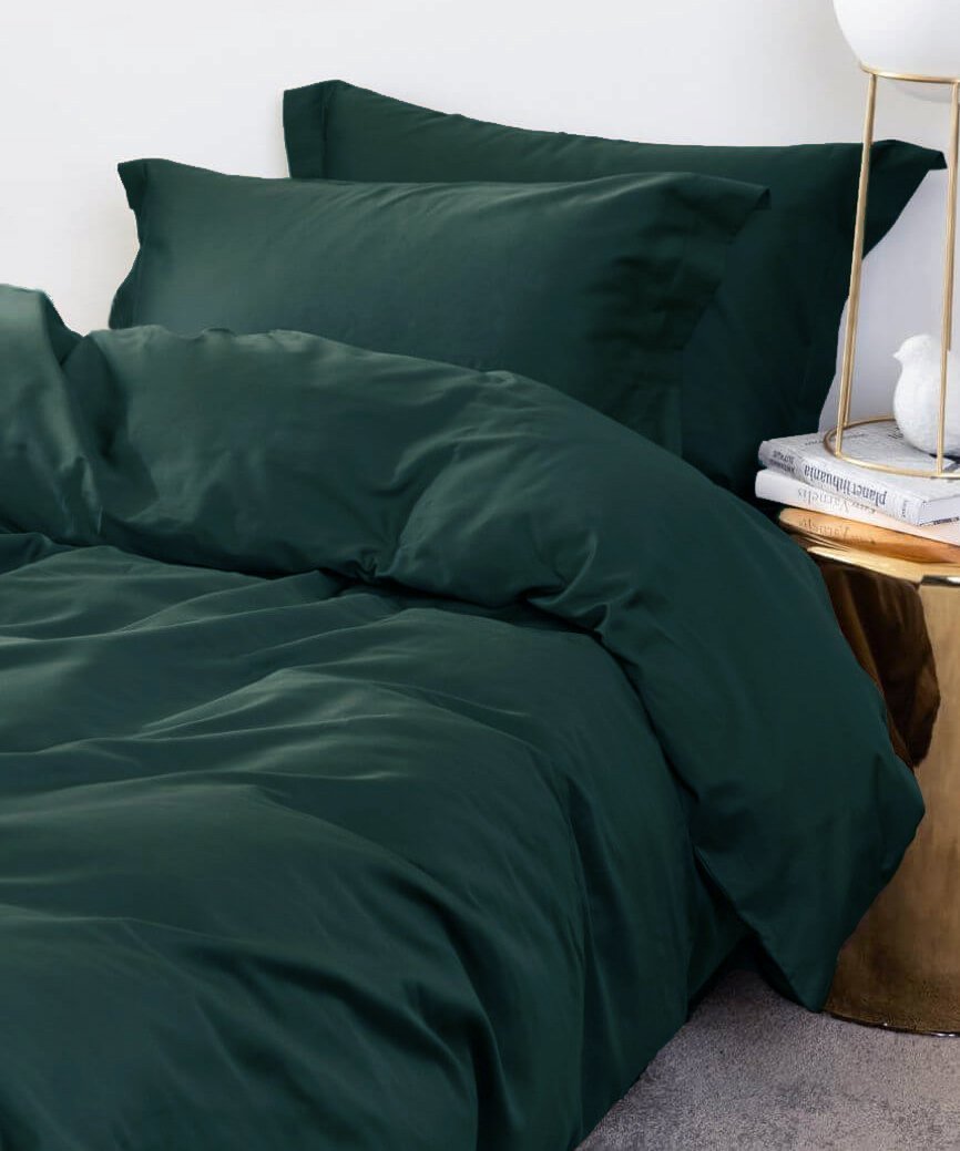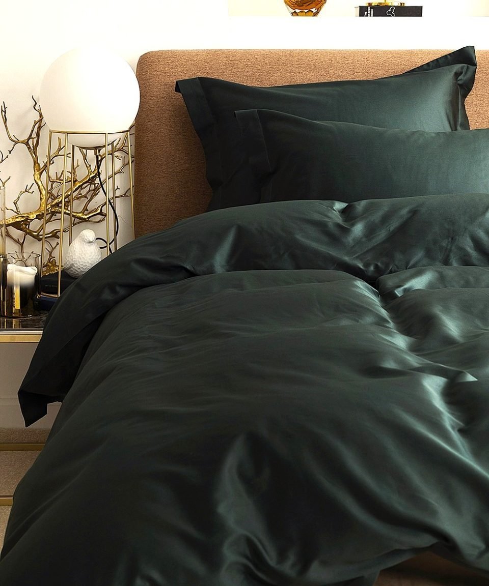 Vienkrāsains satīna gultas veļas komplekts Royal Green