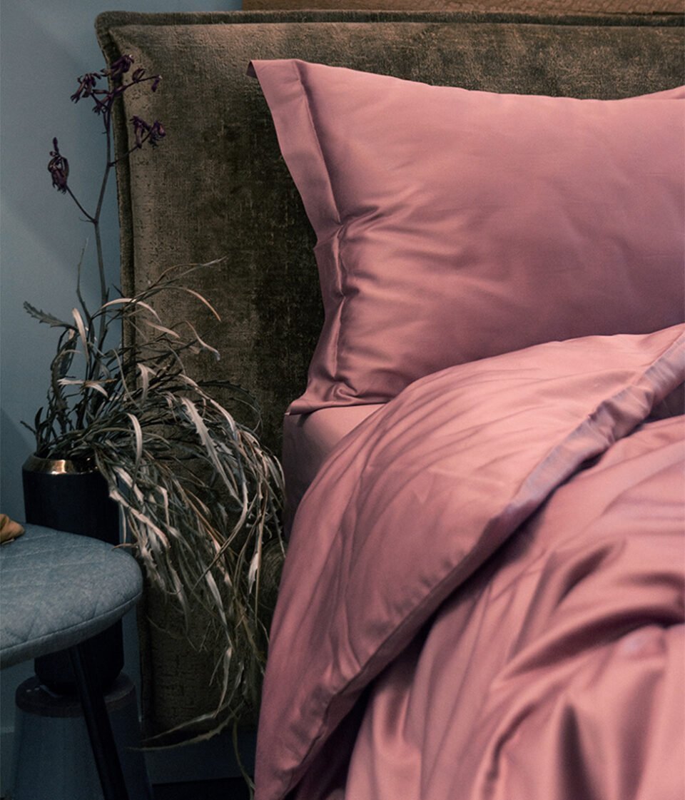 Tumši rozā krāsas satīna gultas veļa guļamistabā ienesīs izsmacinātības sajūtu. Lieliski piemērota klasiskam interjeram.