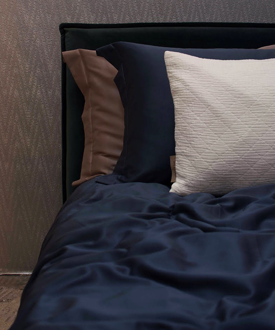 Tumši zilas krāsas komplekts ar smalkiem zelta akcentiem ienesīs relaksācijas sajūtu Jūsu guļamistabā. Lieliski piemērota mūsdienīgam interjeram.