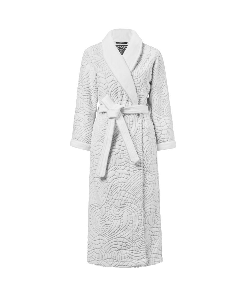 Balts premium kvalitātes halāts. Iedvesmots no Maurīcijas salas lielākā izmirušā Dodo putna spalvu raksta, šis halāts izceļas ar unikālu žakarda rakstu, kas ieausts tieši auduma struktūrā – tas ir ne tikai raksts, bet arī sajūta.