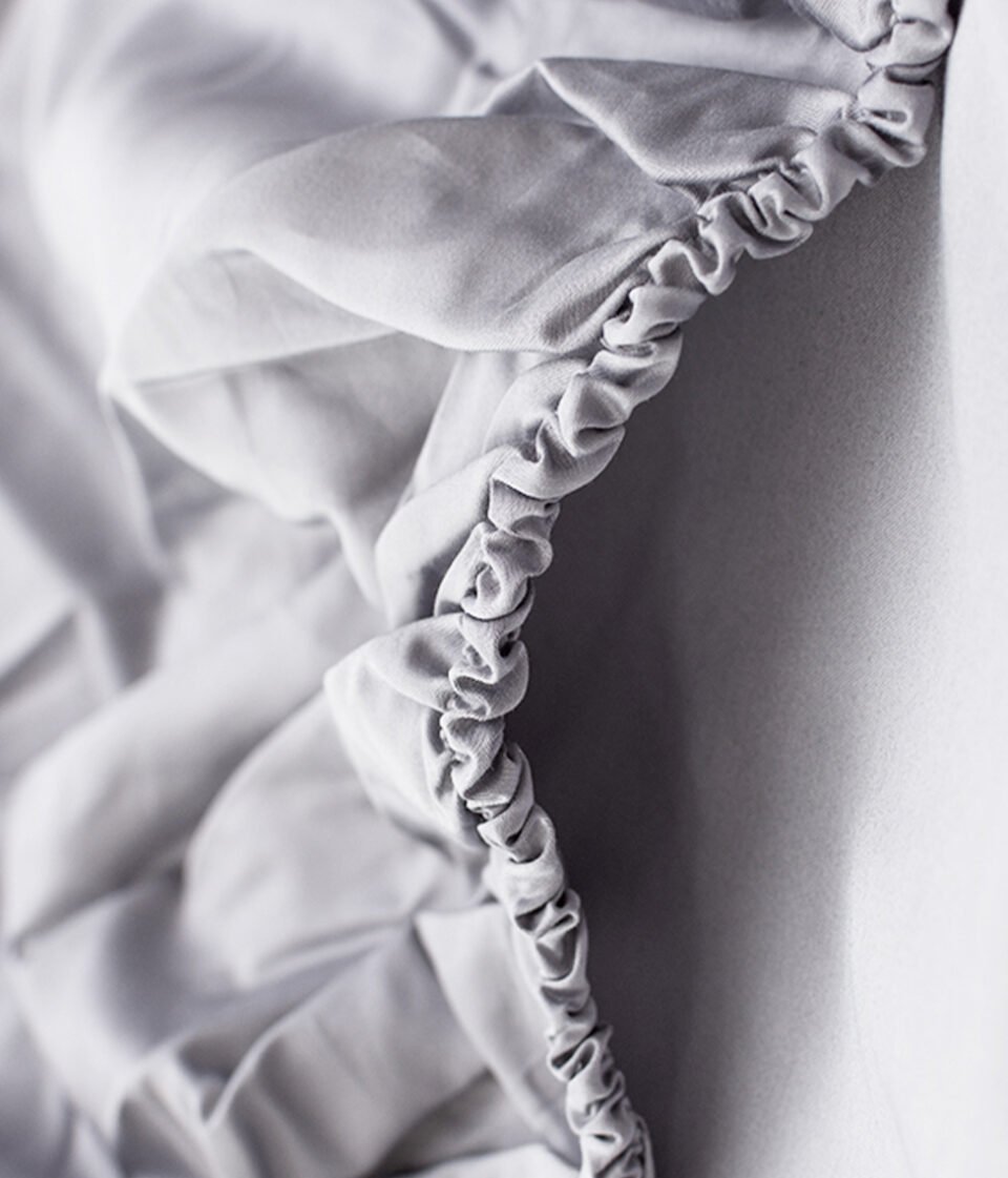 Sudrabaini pelēkas krāsas satīna palags ar gumiju radīs greznības sajūtu Jūsu guļamistabā un tas ir lieliski piemērots jebkuram interjeram.