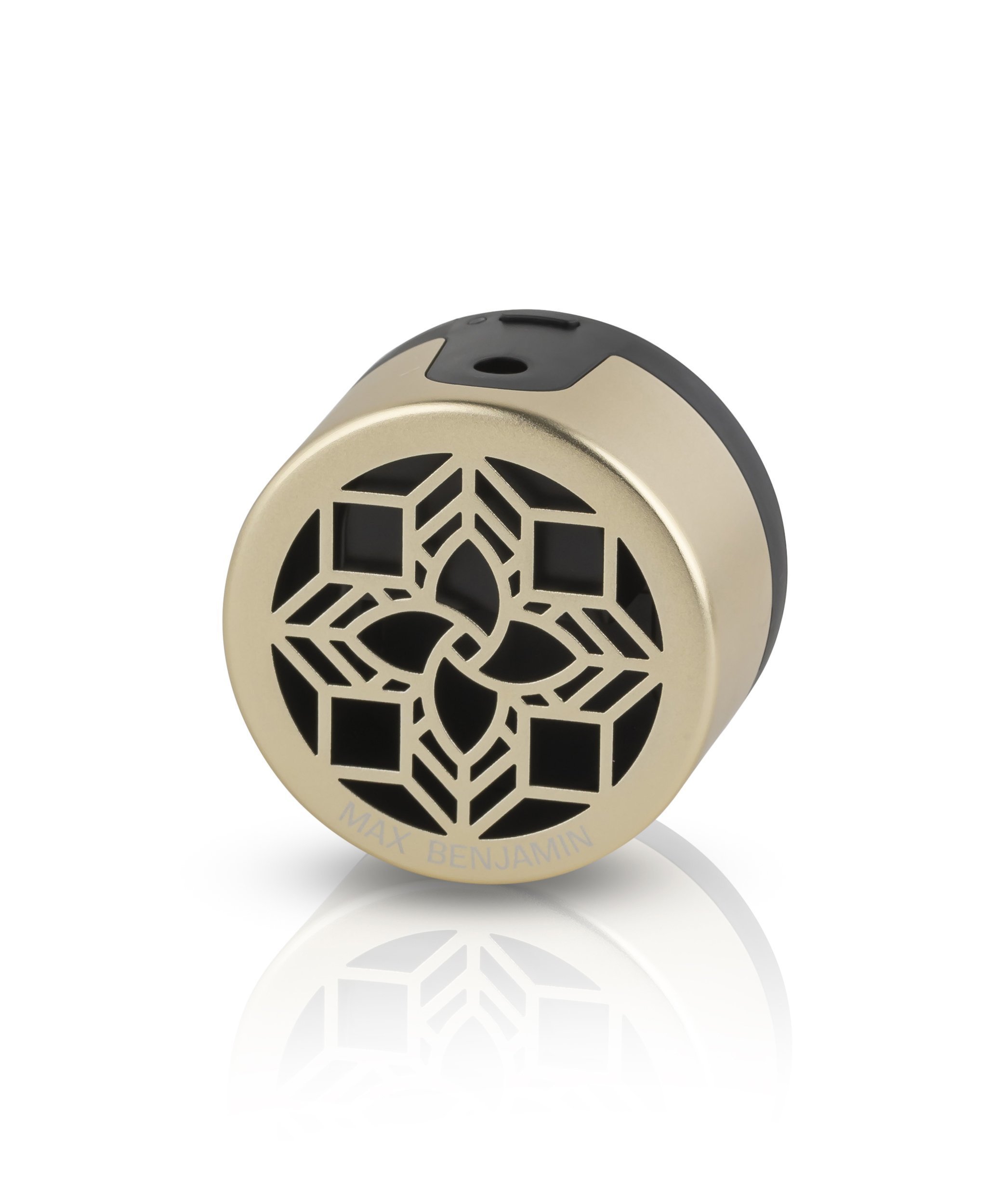 – Noņemiet difuzora priekšējo vāciņu, zelta krāsā. Uzmanīgi ievietojiet smaržīgās eļļas pudeli ierīces aizmugurējā daļā. Pareizi ieliekot, vajadzētu atskanēt klikšķim. Uzlieciet atpakaļ priekšējo vāciņu,