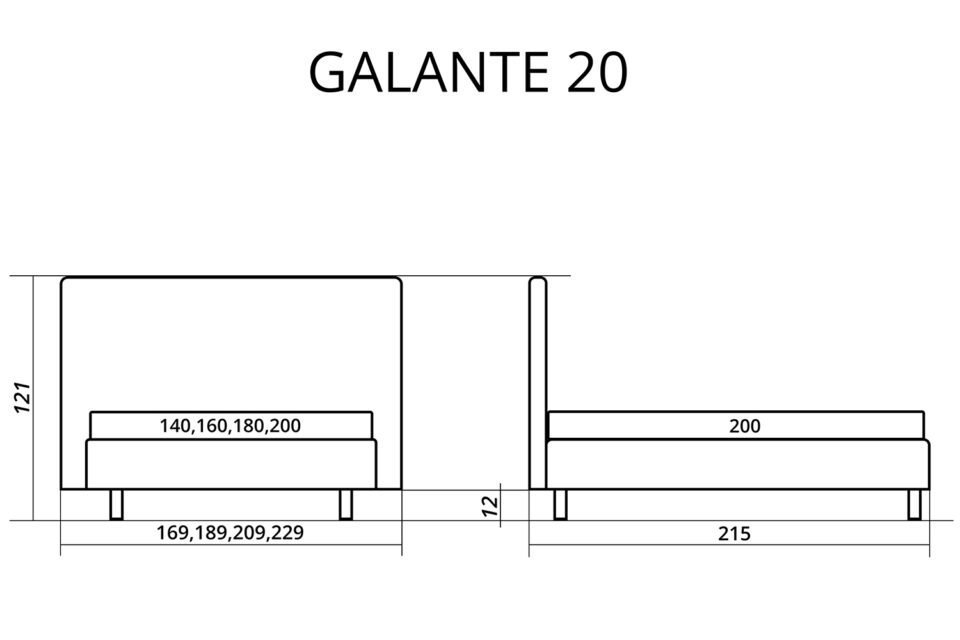 Divguļamā gulta GALANTE ar polsterētu rāmi, galvgalis ar ekskluzīvu dizainu. Īpaši izturīga gultas konstrukcija – pastiprināta ar metāla rāmi. Augstas kvalitātes vācu pneimatiskie rāmju pacēlāji. Uz augšu paceļama blīva ortopēdiska matrača redele. Gultu var izvēlēties ar vai bez veļas kastes.