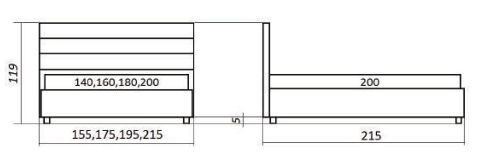 Matrača izmērs – 140×200 cm | gultas izmēri 155x215x119 cm