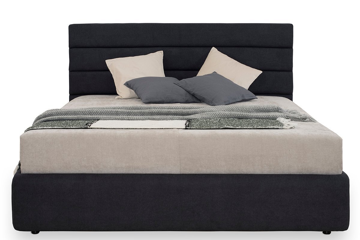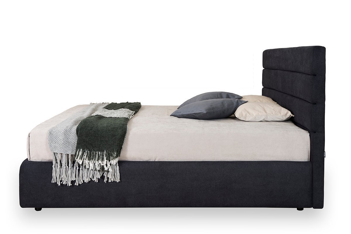 Kompakta gulta ar vienkāršām horizontālām galvgaļa detaļām, polsterētu rāmi, iepriecinās mūsdienīga dizaina cienītājus. Īpaši izturīga gultas konstrukcija – pastiprināta ar metāla rāmi. Augstas kvalitātes vācu pneimatiskie rāmju pacēlāji.