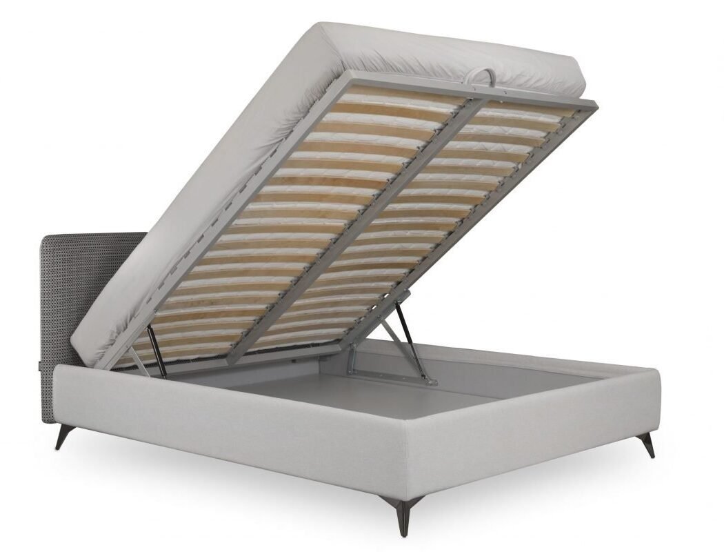 Īpaši izturīga gultas konstrukcija – pastiprināta ar metāla rāmi. Augstas kvalitātes vācu pneimatiskie rāmju pacēlāji. Uz augšu paceļama blīva ortopēdiska matrača redele. Gultu var izvēlēties ar vai bez veļas kastes.