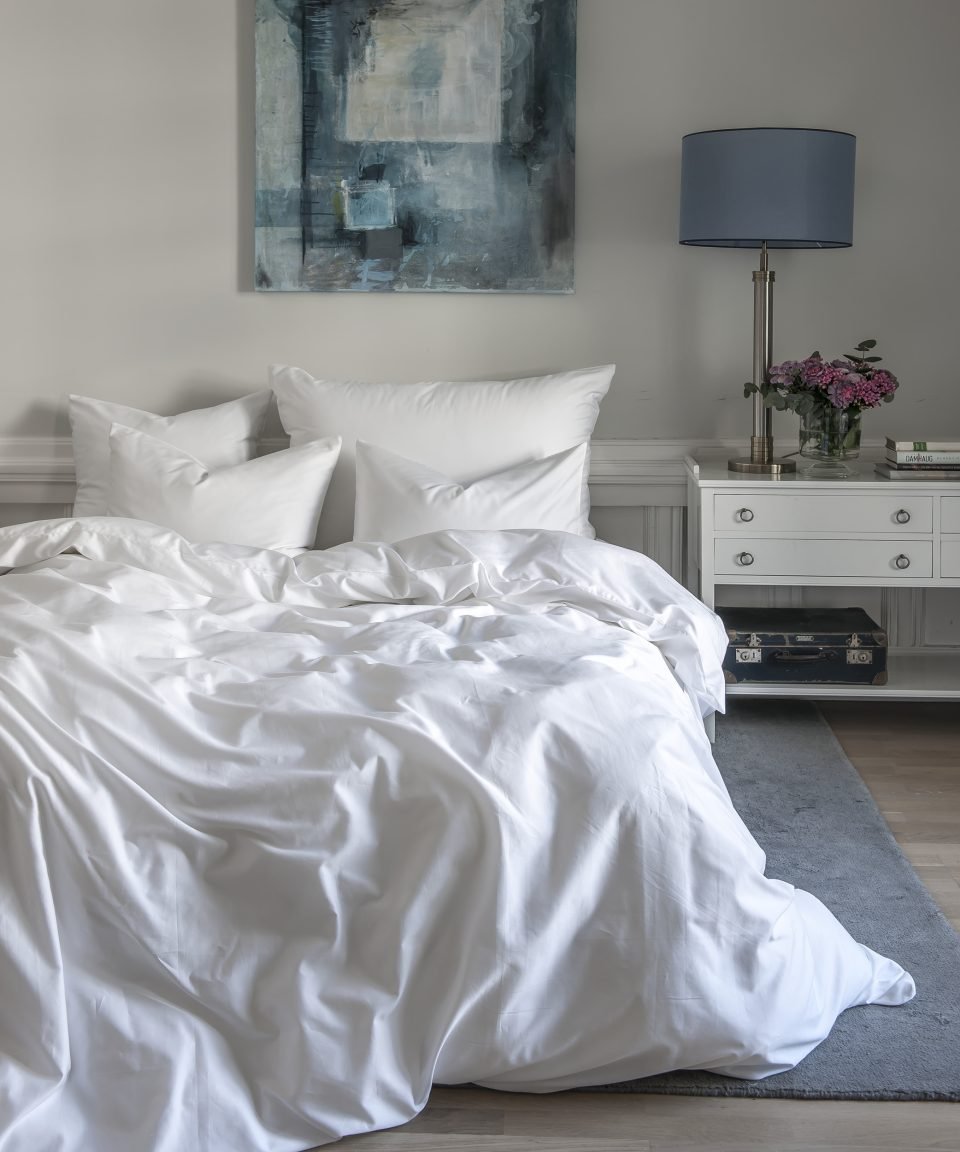 Klasisks risinājums guļamistabai ar Turiform Enjoy gultasveļu baltā krāsā. Šī gultasveļa ir izgatavota no 100% bambusa, un tā ir austa ar satīna aušanas veidu, lai tā būtu izturīga un zīdaini mīksta.