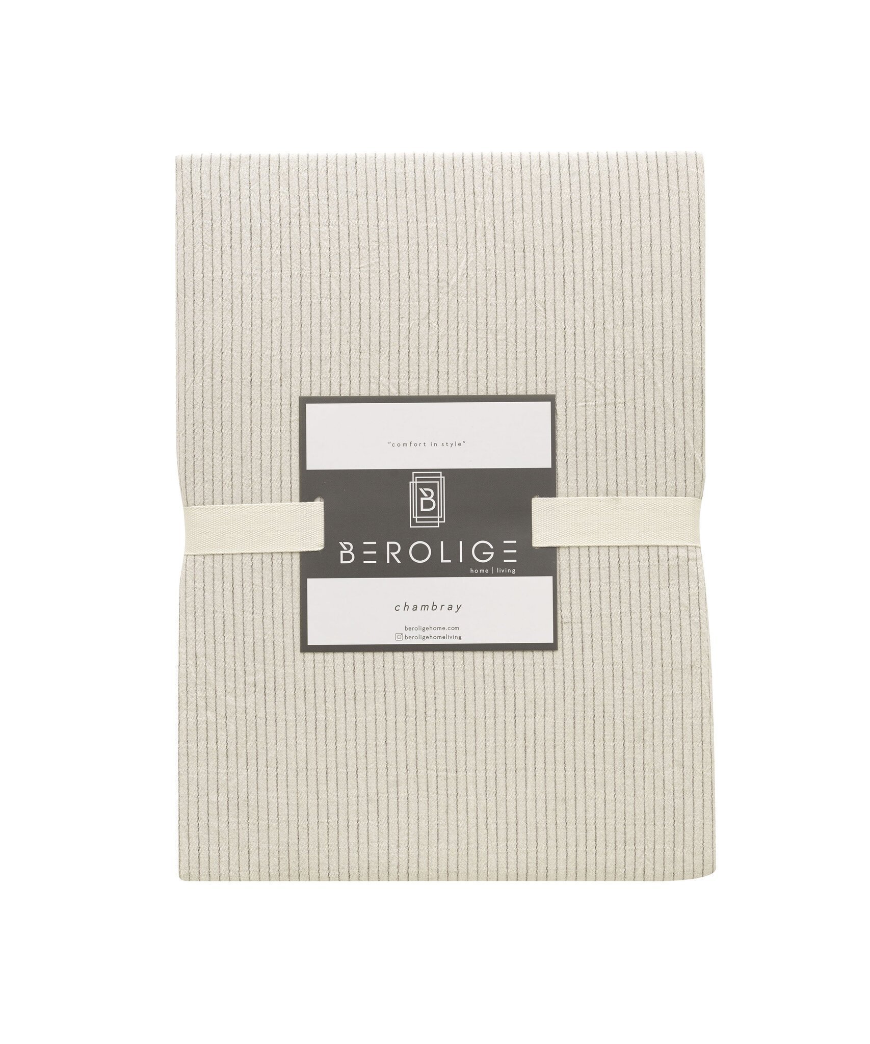 Gultas veļas komplekts šūts no Chambray auduma, kas pēc struktūras un tekstūras līdzīgs lina audumam, tikai daudz vieglāks un mīkstāks, tas ir izturīgs un ilgi kalpojošs.