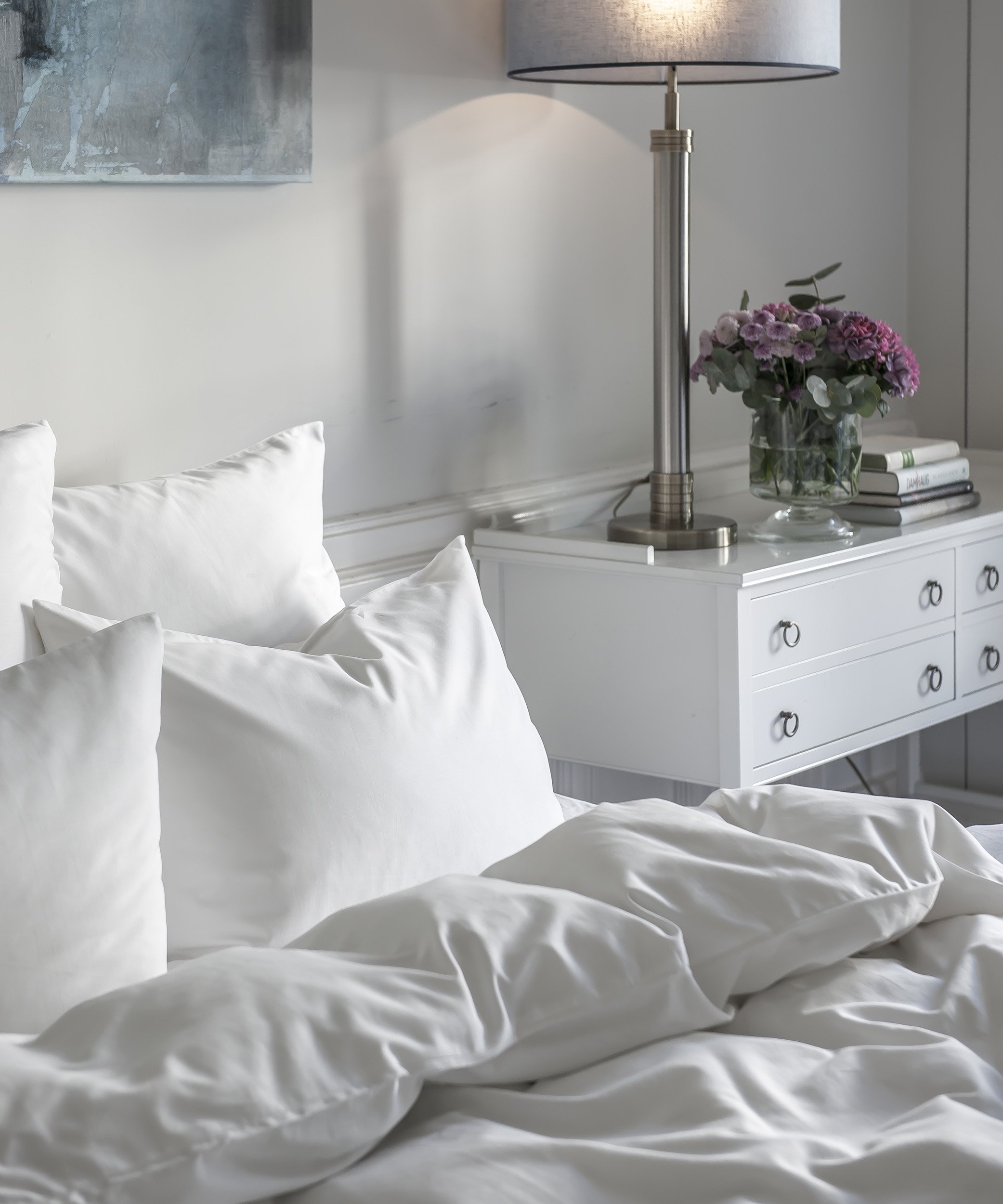 Klasisks risinājums guļamistabai ar Turiform Enjoy gultasveļu baltā krāsā. Šī gultasveļa ir izgatavota no 100% bambusa, un tā ir austa ar satīna aušanas veidu, lai tā būtu izturīga un zīdaini mīksta.