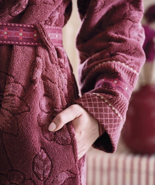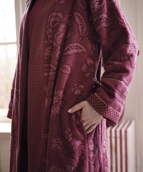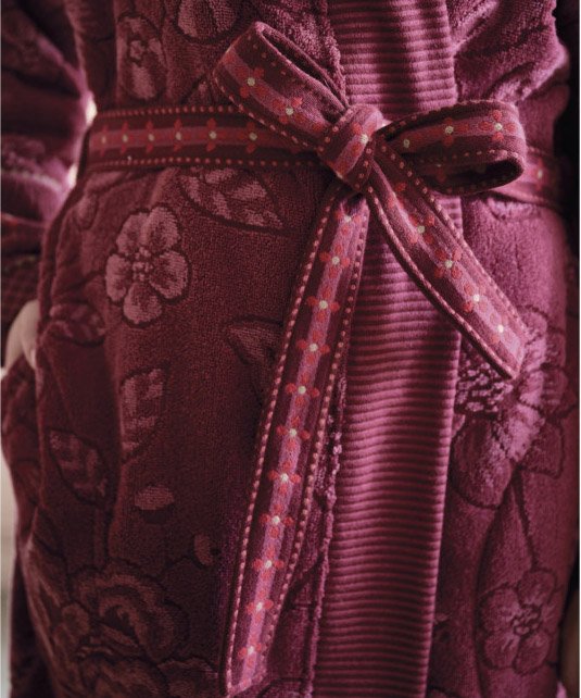 Jasmin Jacquard kolekcijas halāts no Pip Studio – grezns, maigs halāts ar smalku ziedu rakstu bordo tonī. Piedurkņu gali rotāti ar žakarda apdari, bet josta – ar bagātīgu, austu ziedu motīvu.
