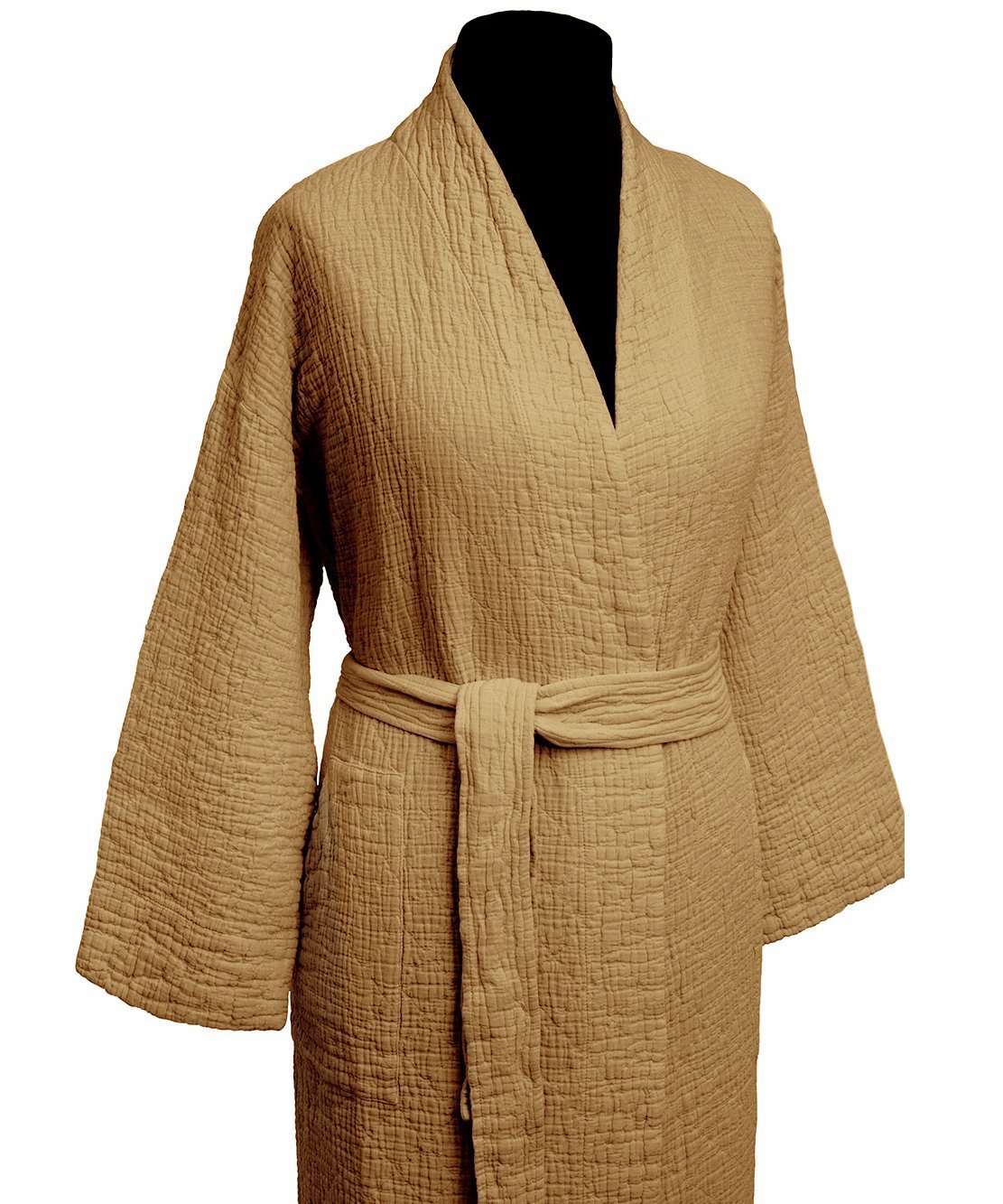 Kanēļa krāsas kokvilnas halāts ar maigu tekstūru un eleganta minimālisma rakstu paredzēts tiem, kam patīk smalkums un unikalitāte. Patīkams un mīksts kokvilnas audums, kas rada viegluma sajūtu.
