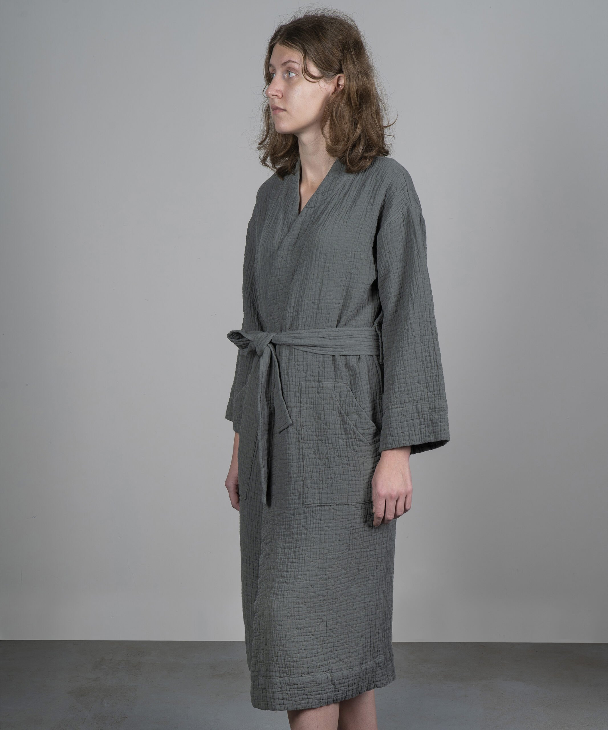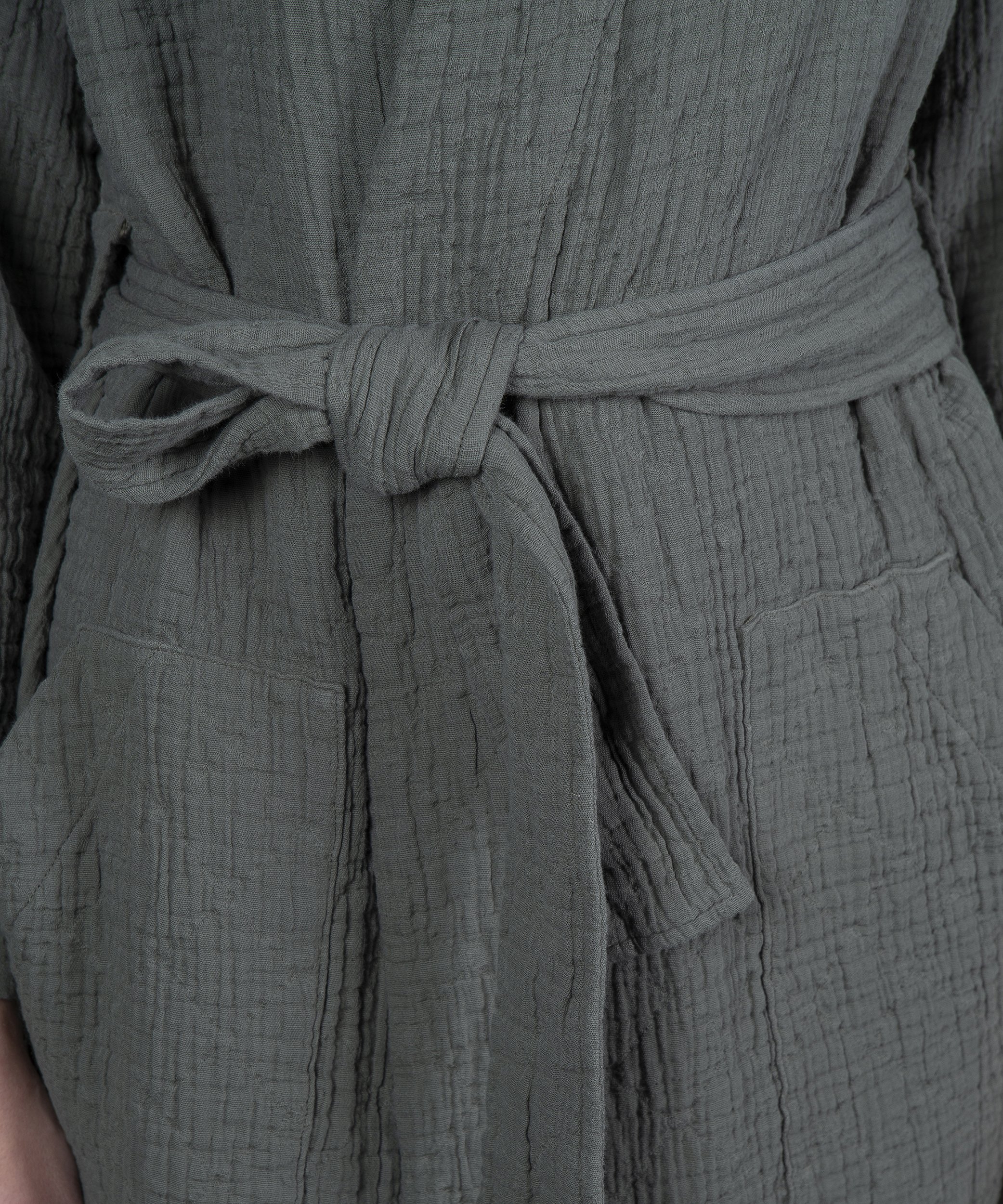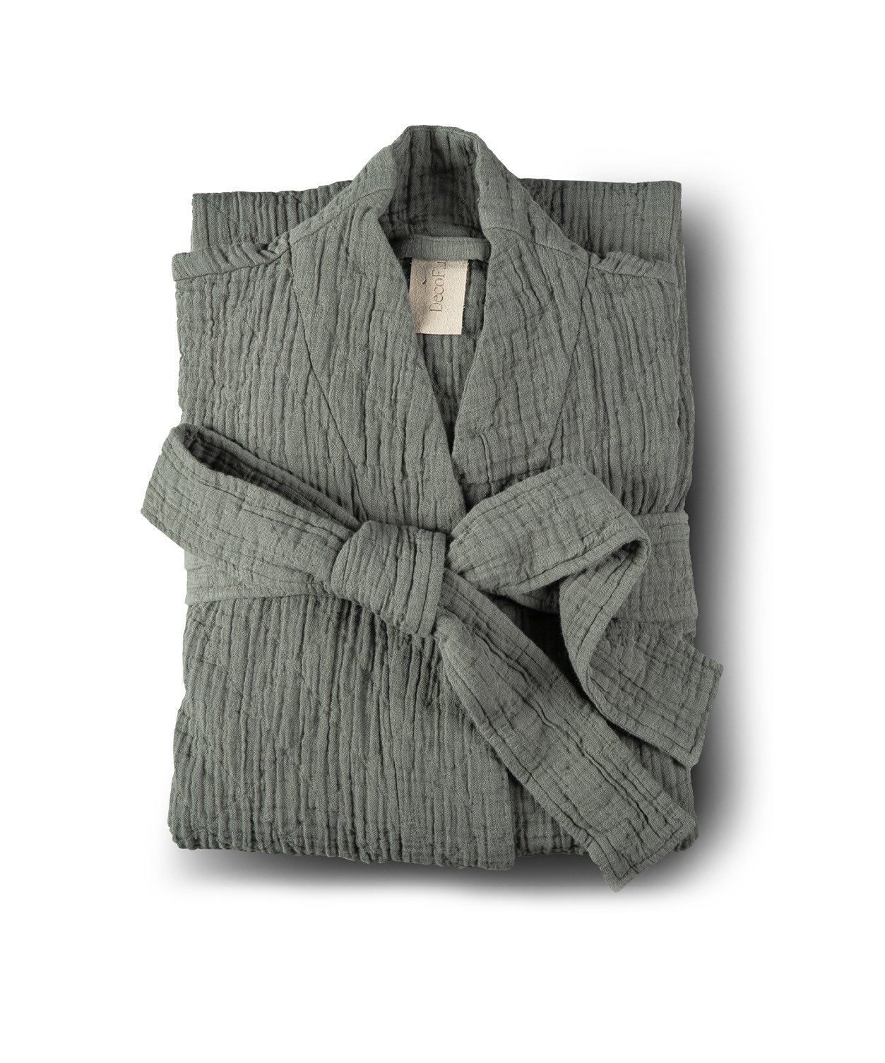 Pelēcīgi zaļas krāsas kokvilnas halāts Orion Iceland Moss ar maigu tekstūru un eleganta minimālisma rakstu paredzēts tiem, kam patīk smalkums un unikalitāte. Patīkams un mīksts kokvilnas audums, kas rada viegluma sajūtu.