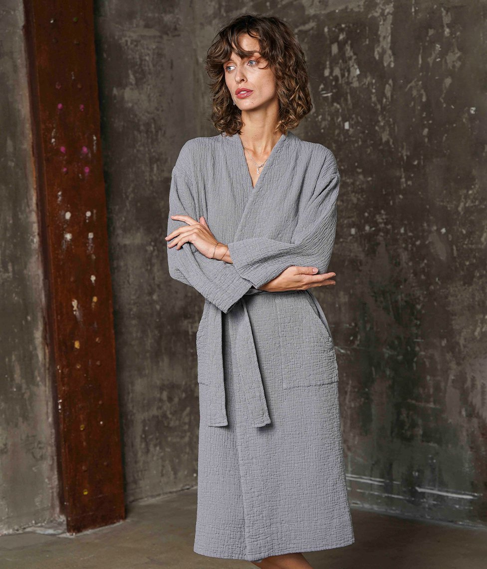 Pelēkas krāsas halāts Orion Slate ar maigu tekstūru un eleganta minimālisma rakstu paredzēts tiem, kam patīk smalkums un unikalitāte. Patīkams un mīksts kokvilnas audums, kas rada viegluma sajūtu.