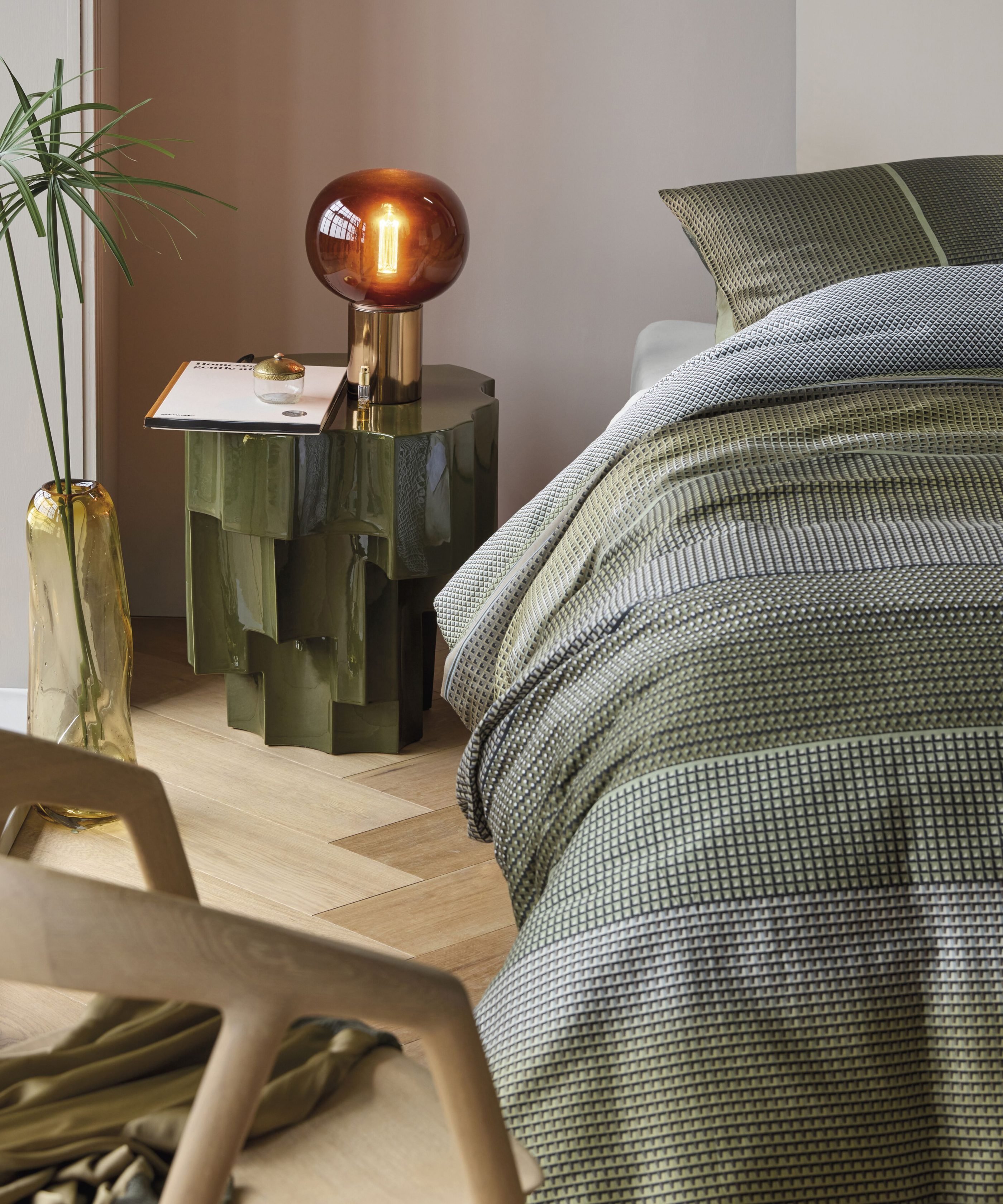 Charlottesville Green gultas veļas komplekts no Kardol by Beddinghouse kolekcijas, ar svītru rakstu un ar grafiskiem motīviem piešķir modernu un arhitektonisku izskatu. Smalka krāsu pāreja rada harmonisku, bet greznu noskaņu. Pateicoties satīna aušanas veidam, audums ir vienreizēji mīksts un ar satīnam raksturīgu spīdumu. Abas puses vienādas, ar rakstu.