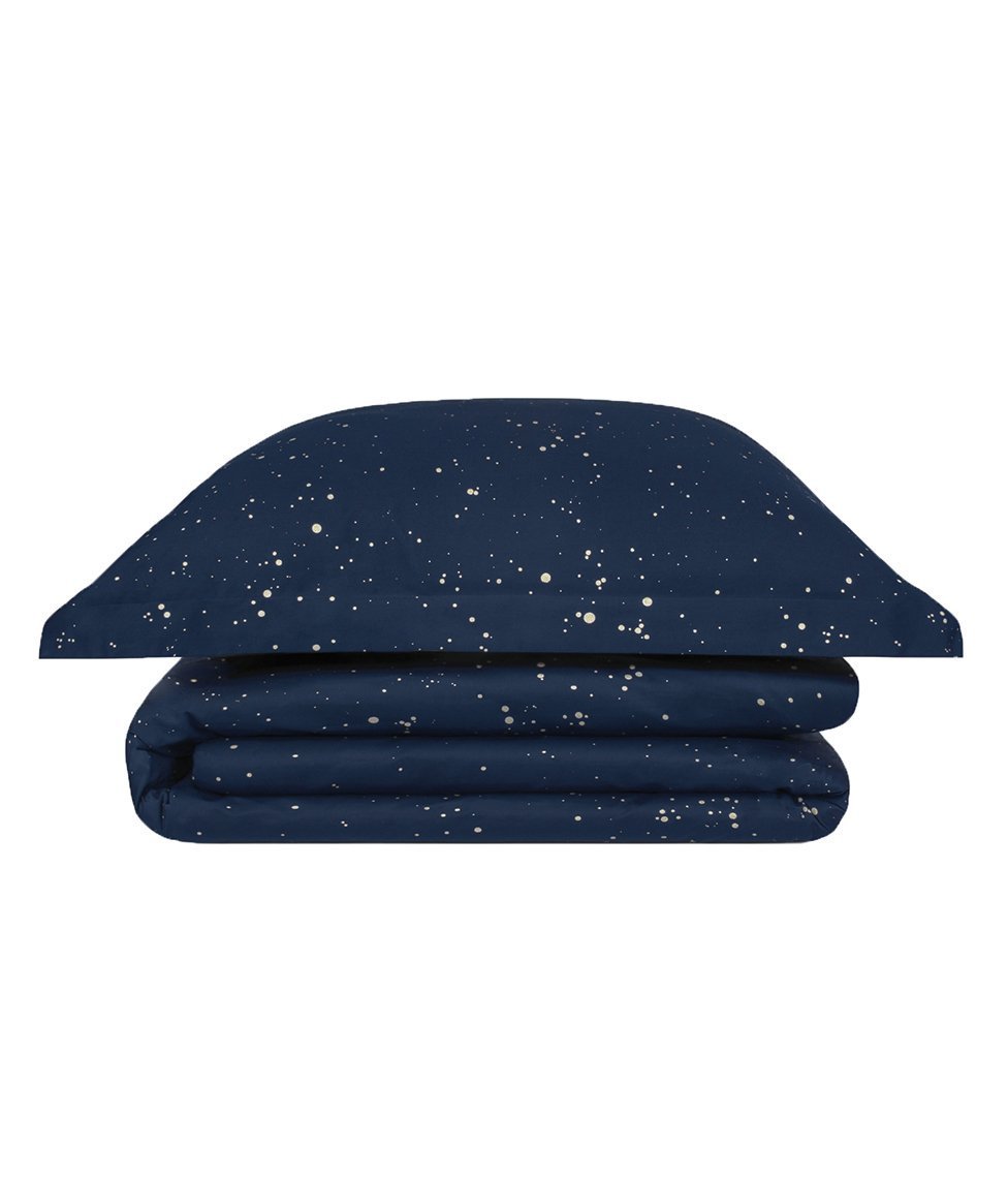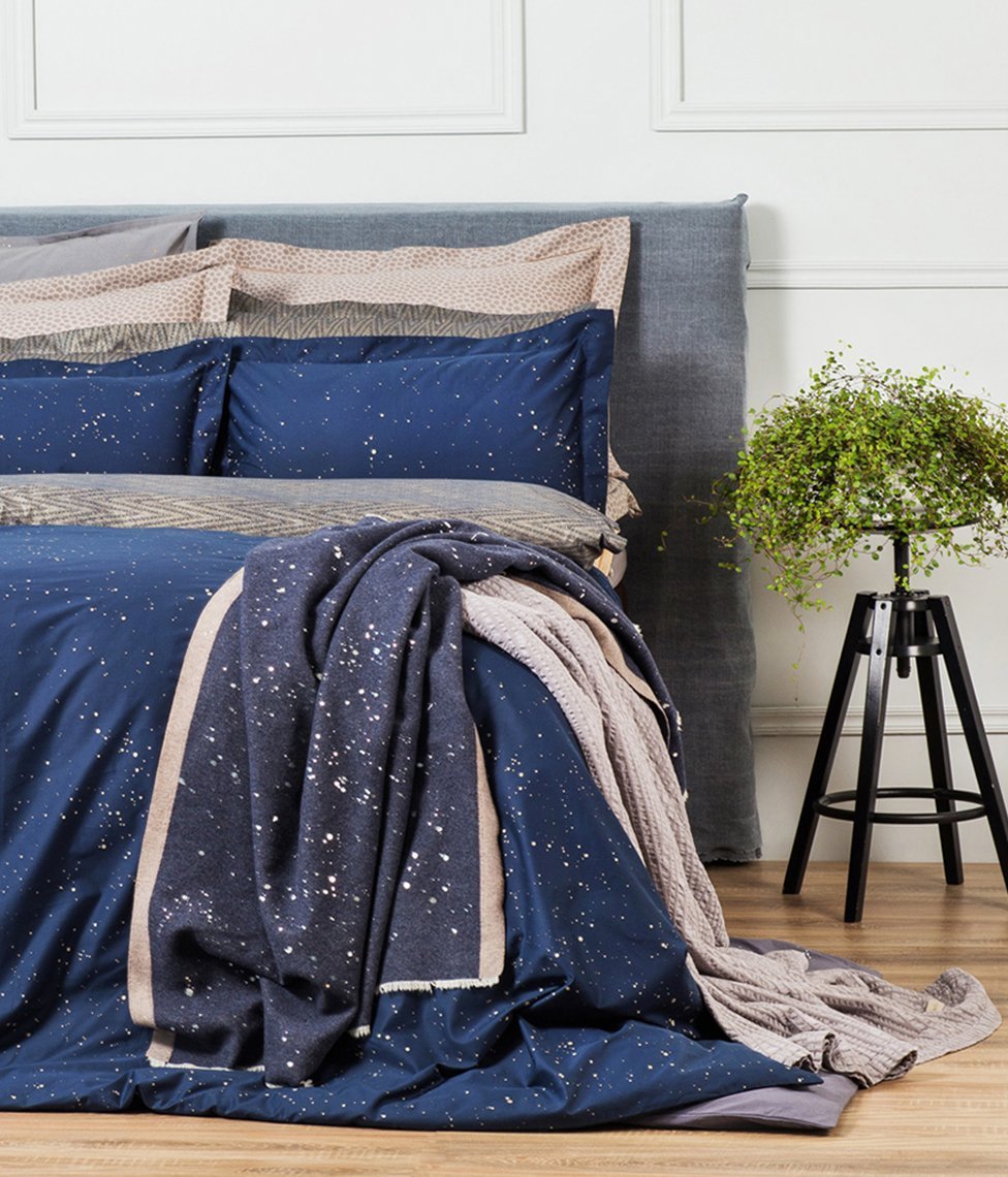 Tumši zilas krāsas komplekts ar smalkiem zelta akcentiem ienesīs relaksācijas sajūtu Jūsu guļamistabā. Lieliski piemērota mūsdienīgam interjeram.