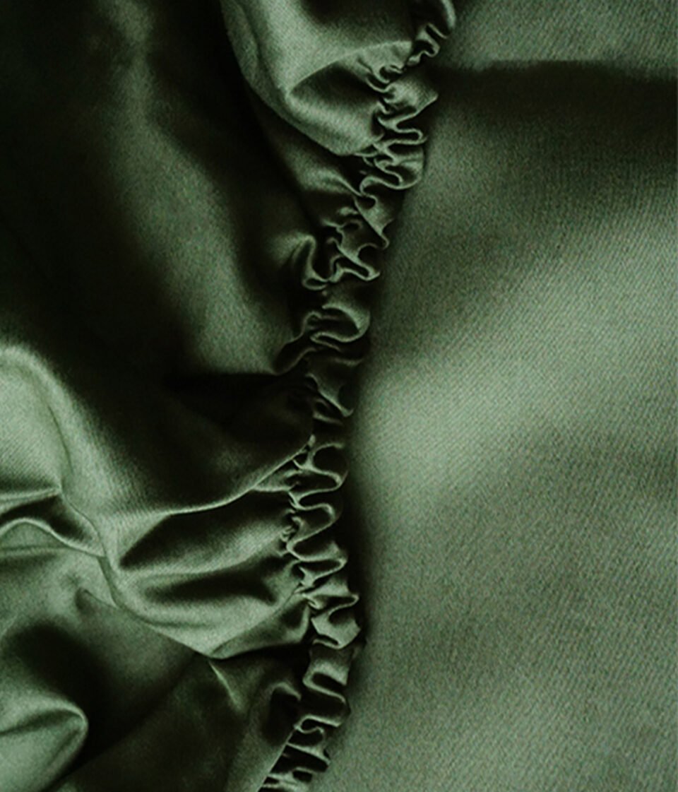 Piesātināti zaļās sūnu krāsas satīna palags ar gumiju radīs Jūsu guļamistabā relaksētu sajūtu.