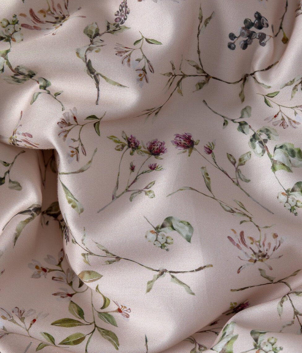 Herbary Pink satīna gultas veļas komplekts ir dabas iedvesmota harmonija. Uz maigi roza pamata rūpīgi izstrādāts sīku ziedu raksts, elegantai un nomierinošai atmosfērai Jūsu guļamistabai, savukārt augstas kvalitātes kokvilnas satīna audums nodrošina izcilu maigumu un smalku spīdumu. Abas puses vienādas – ar rakstu.