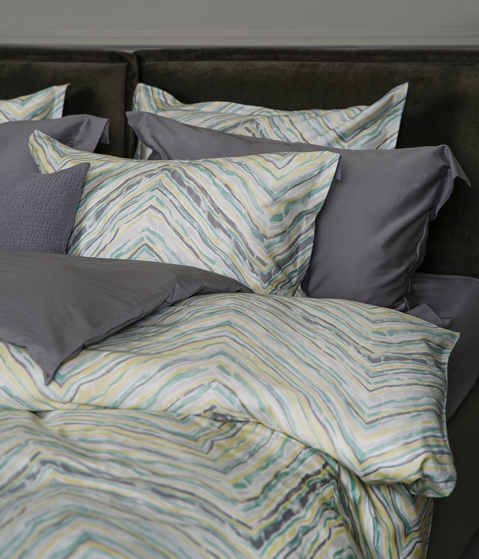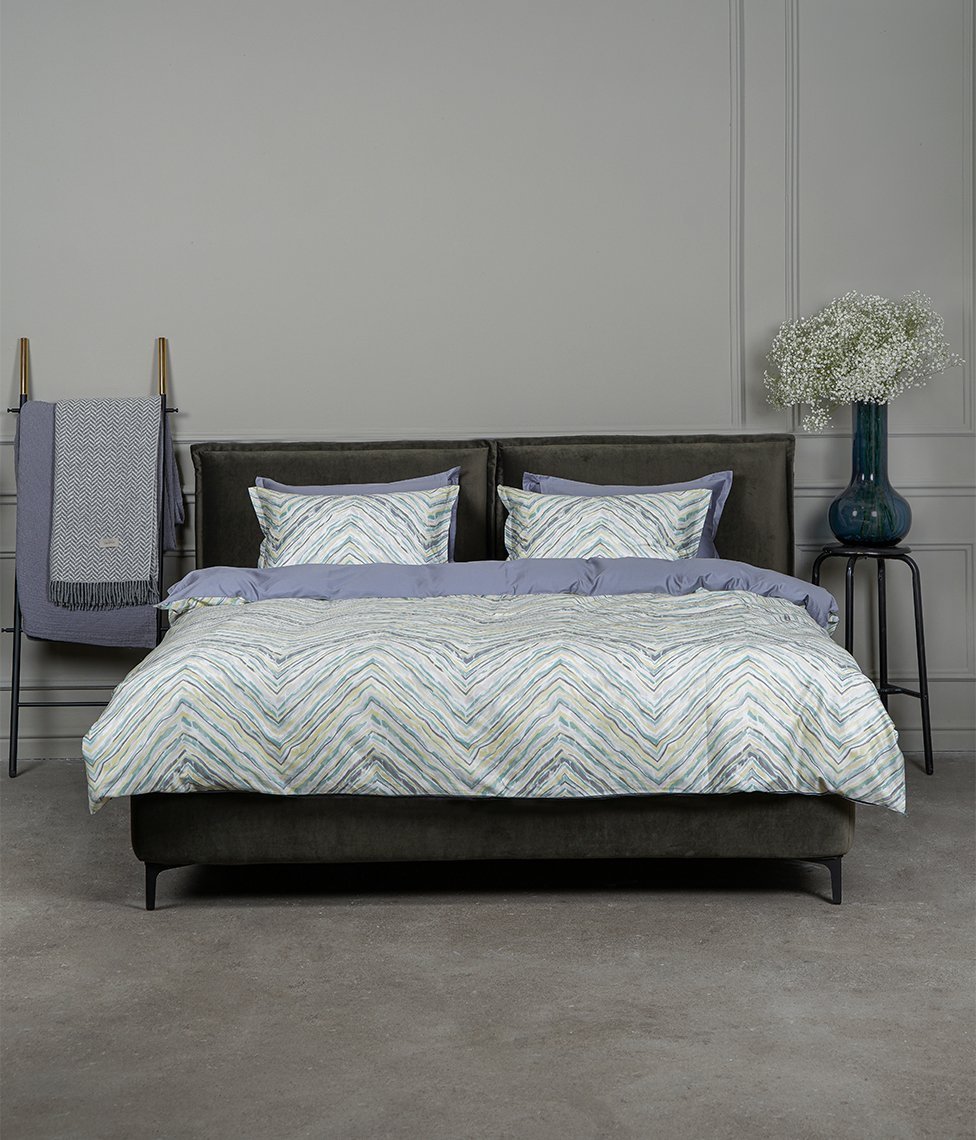 Simetrisks pasteļtoņu krāsu raksts radīs patīkamu sajūtu Jūsu guļamistabā. Šī gultas veļa lieliski piemērota gan lauku, gan klasiskam interjeram. Viena puse segas pārvalkam ir ar rakstu, otra-sudraba pelēkā (Silver Chalk).