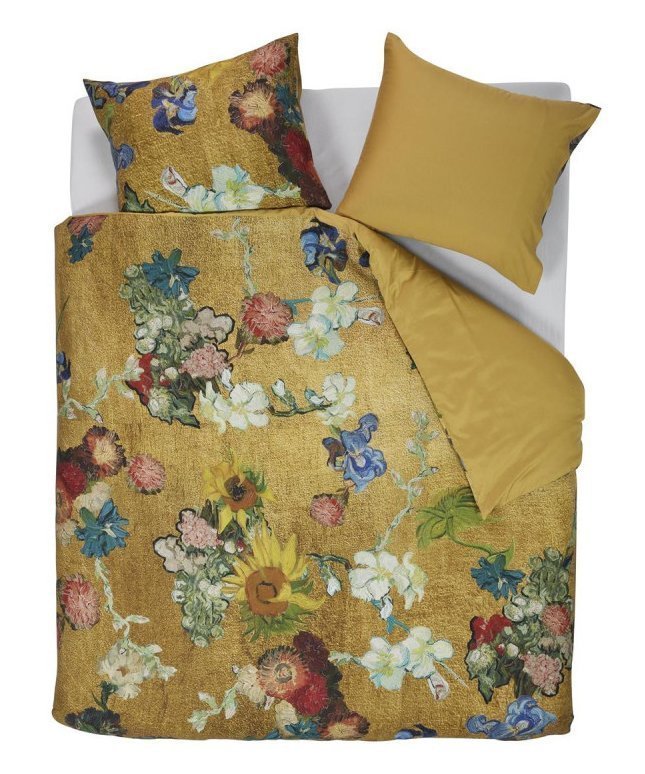 Komplekta Partout des Fleurs kompozīcija veidota no atsevišķiem ziediem, no muzeja kolekcijā esošajām dažādām Vincenta van Goga ziedu gleznām – īrisiem, peonijām un zilajām delfīnijām, ķīniešu asterēm un gladiolām, saulespuķēm un, protams, ikoniskajiem mandeļu ziedu zariem. Šis ziedu krāšņums kontrastē ar dzeltenīgo fonu, radot krāšņu, dzīvības un krāsu pilnu dizainu. Segas pārvalka aizmugure ir vienkrāsaina. Auduma apdrukas metode izvēlēta tā, lai rezultāts pēc iespējas vairāk atbilstu gleznojuma tehnikai, ar skaidri redzamiem otas triepieniem.