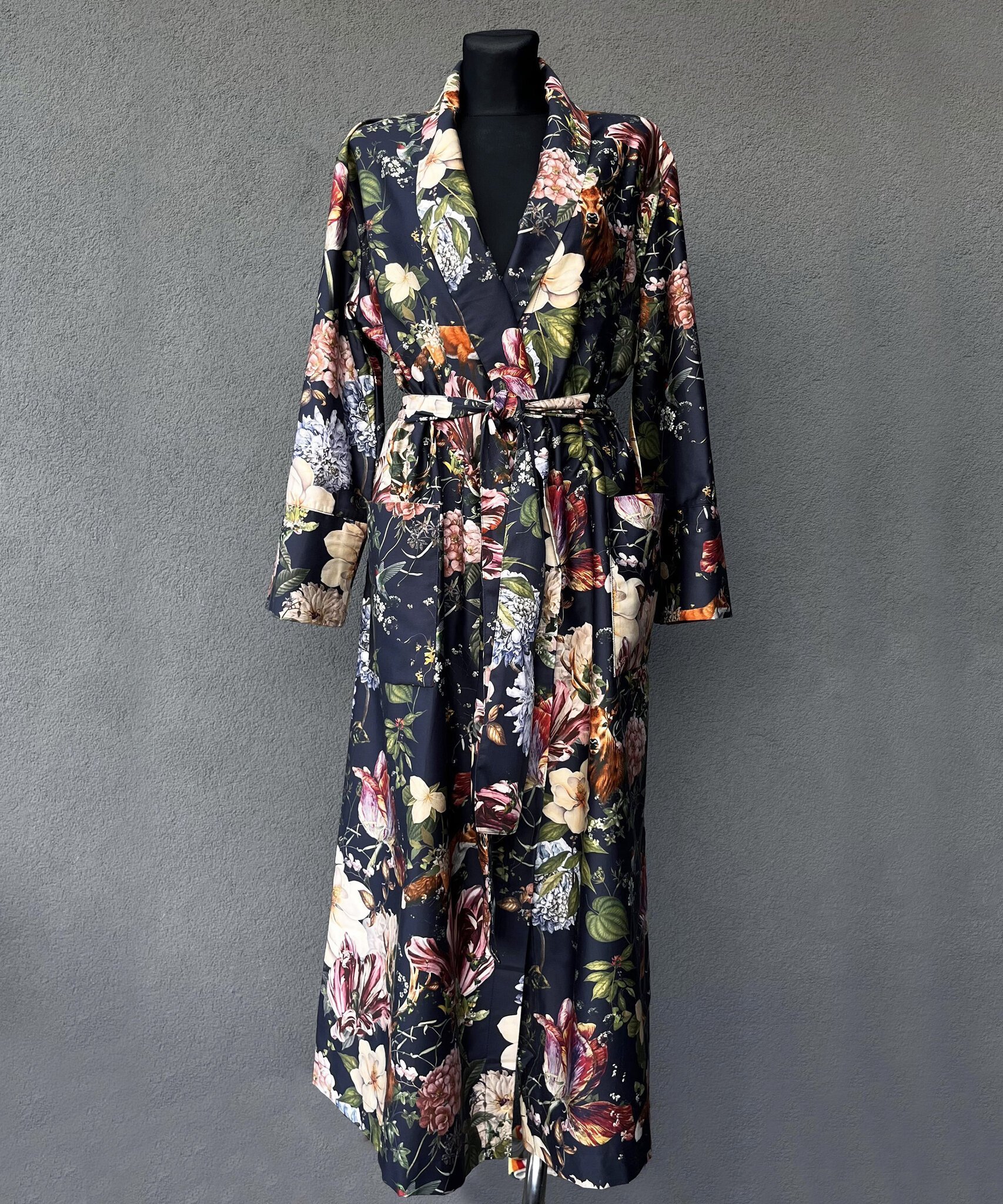 Satīna halāts Magic Garden Dark Blue