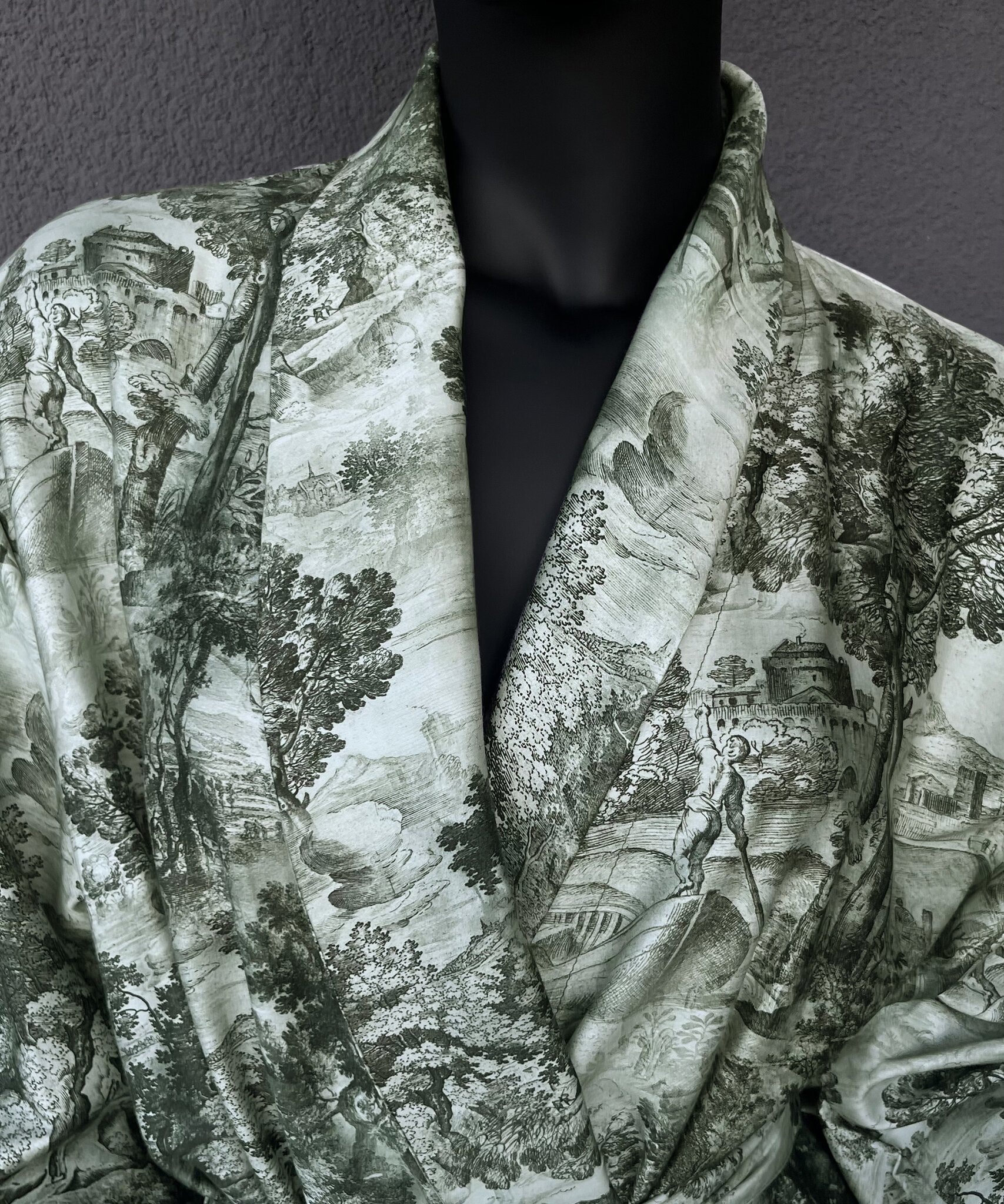Kolekcijas The Lovers Tale halāts no viegla un patīkama auduma. Luksusa sajūtu nodrošina kvalitatīvs garšķiedras kokvilnas satīns ar TC300 aušanas blīvumu.