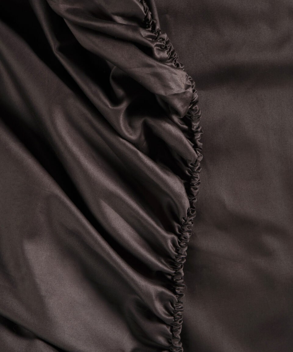 Tumšās šokolādes krāsas satīna palags ar gumiju. Lieliski piemērots jebkuram interjeram.
