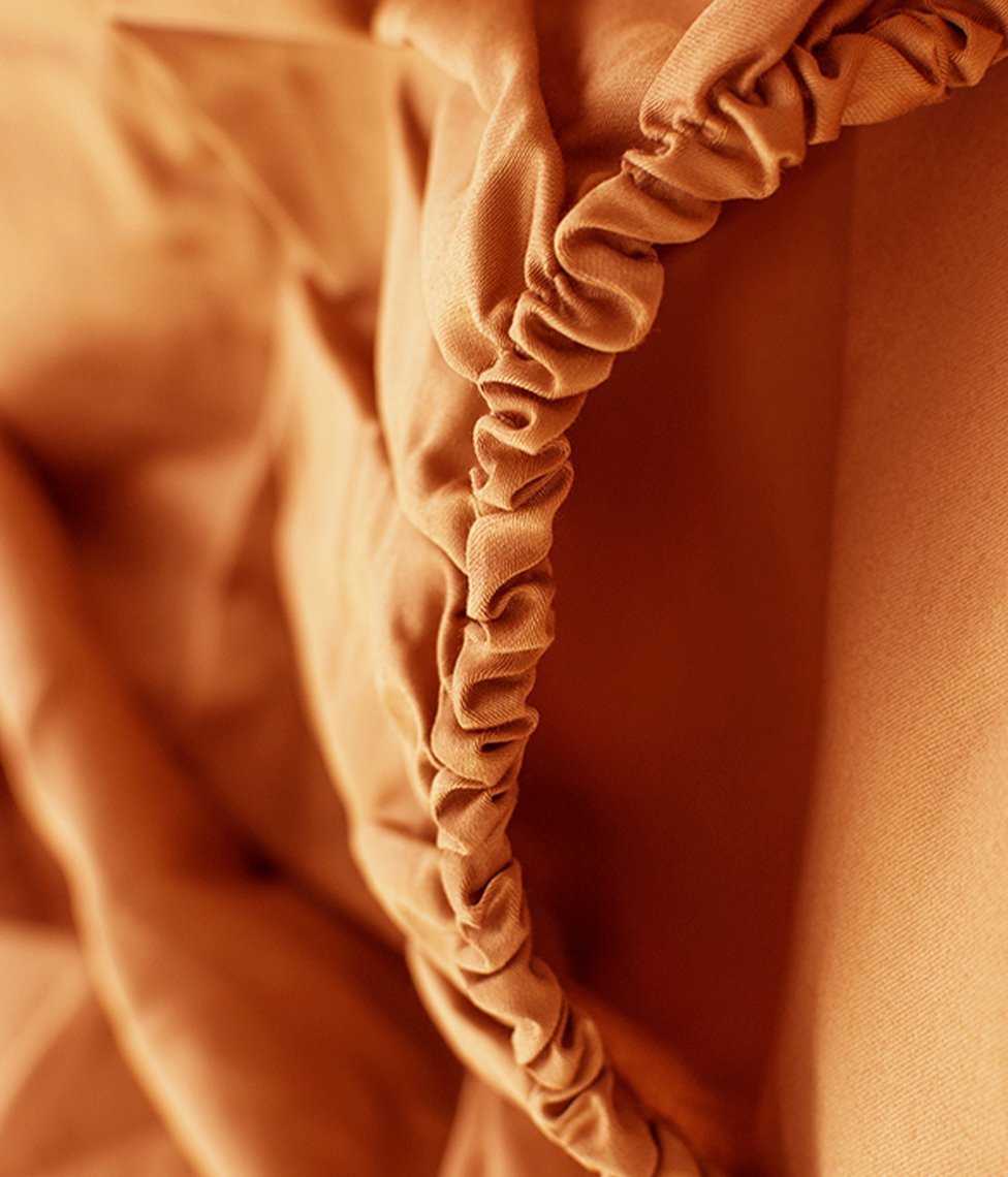 Persiku krāsas satīna palags ar gumiju radīs siltu un elegantu noskaņu Jūsu guļamistabā un tas ir lieliski piemērots jebkuram interjeram.