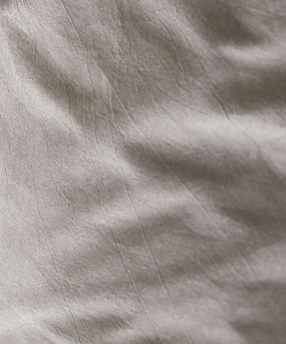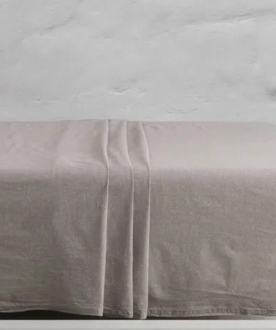 Palags bez gumijas no kokvilnas auduma gaiši brūnā krāsā. Palags šūts no Chambray auduma, kas pēc struktūras un tekstūras līdzīgs lina audumam, tikai daudz vieglāks un mīkstāks.