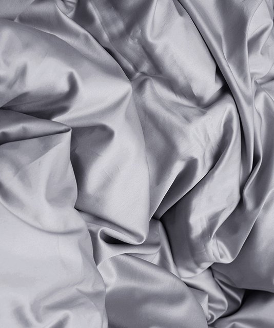 Sudrabaini pelēkas krāsas satīna spilvendrāna, pieejama ar un bez dekoratīvi nošūtām maliņām. To var izmantot atsevišķi vai papildināt satīna gultas veļas komplektus.
