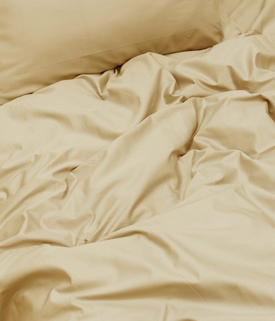 Premium kvalitātes kokvilnas satīna palags bēšā krāsā, izturīgs un zīdaini maigs.