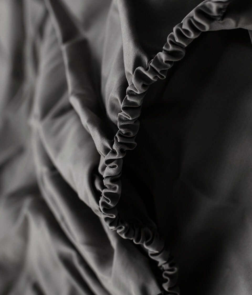 Tumši pelēkas krāsas satīna palags ar gumiju radīs estētisku saskaņu Jūsu guļamistabā. Lieliski izskatīsies jebkurā interjerā.