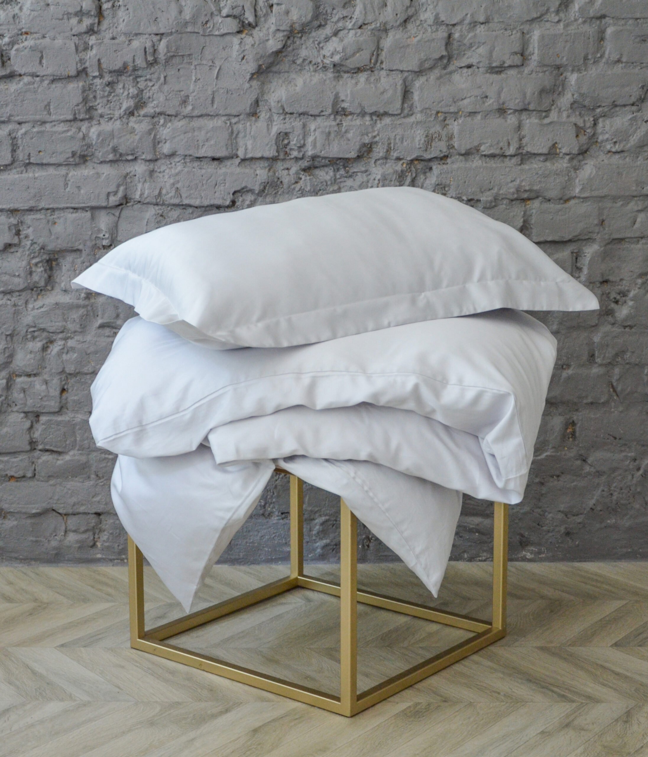 Gaiši pelēkas krāsas spilvendrānas, pieejama ar un bez dekoratīvi nošūtām maliņām. To var izmantot atsevišķi vai papildināt satīna gultas veļas komplektus.