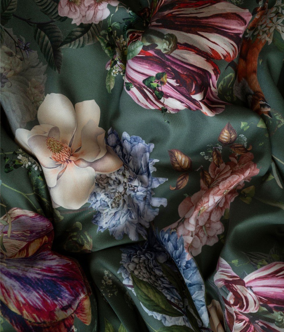 Kolekcija Magic Garden ar skaistu un izteiksmīgu ziedu motīvu, un piesātinātām krāsām, no maiga kokvilnas satīna. Magic Garden Moss abas puses, gan spilvendrānai, gan segas pārvalkam, ir ar ziedu rakstu uz tumši zaļa fona. Ziedu motīvos izmantotajai plašajai krāsu paletei piestāvēs vairāki palagu krāsu varianti.