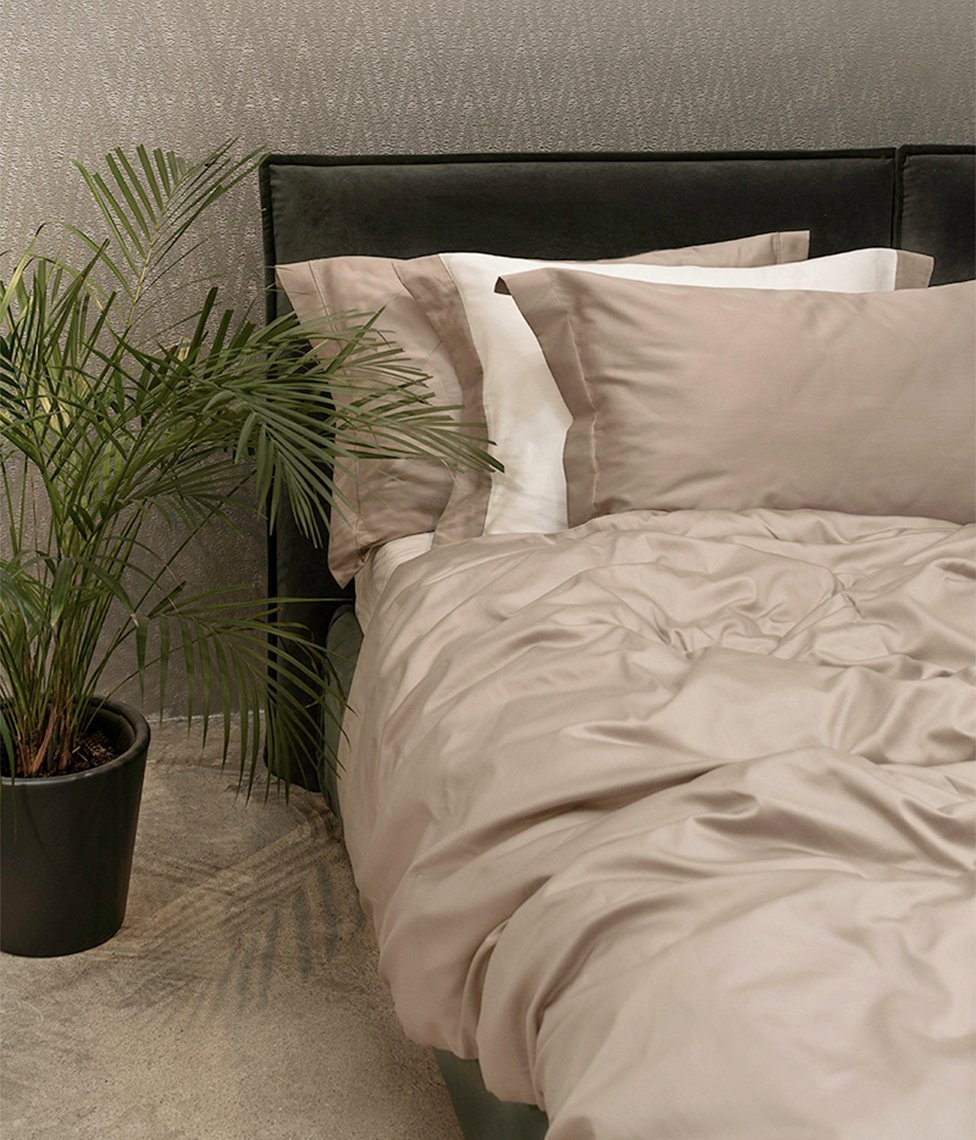 Premium kvalitātes kokvilnas satīna spilvendrāna bēšā krāsā. Šūta no žakarda auduma, ar neuzkrītošu, bet elegantu ģeometrisku rakstu un zīdam līdzīgu spīdumu.