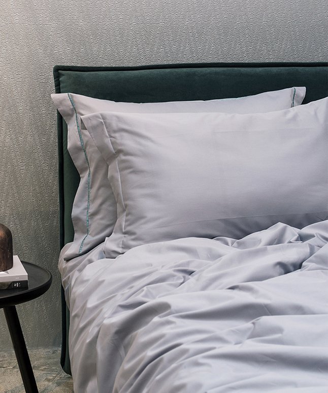 Sudrabaini pelēkas krāsas satīna spilvendrāna, pieejama ar un bez dekoratīvi nošūtām maliņām. To var izmantot atsevišķi vai papildināt satīna gultas veļas komplektus.