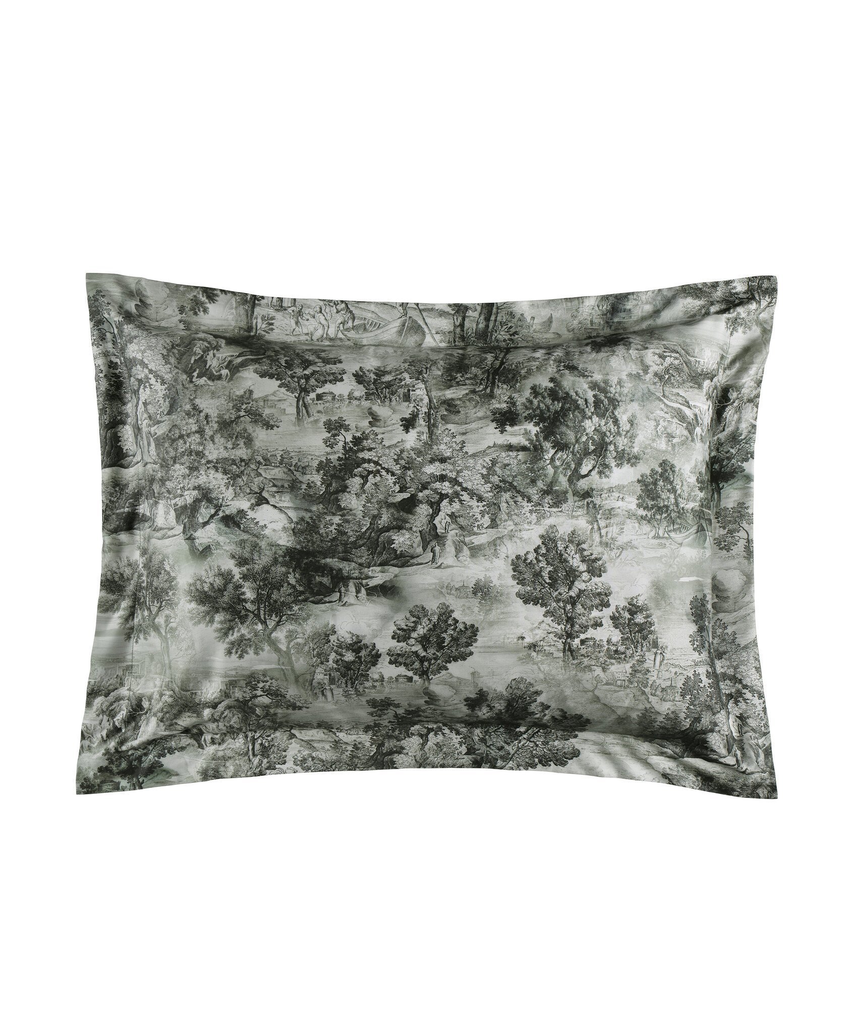 The Lovers Tale Moss spilvendrānas abas puses ir vienādas – ar zaļganu rakstu uz balta fona. To var izmantot atsevišķi vai papildināt satīna gultas veļas komplektus.