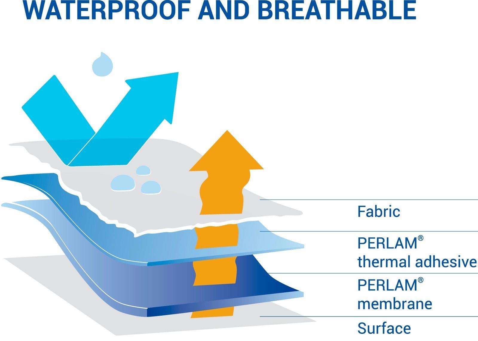 Membrāna (zem TencelTM slāņa, kas ir saskarē ar matraci) – 100% poliuretāns, ūdens necaurlaidība nodrošināta izmantojot laminēšanas sistēmu PERLAMTM.