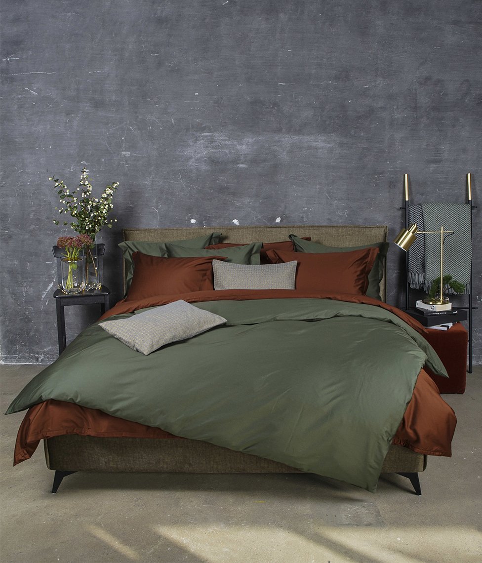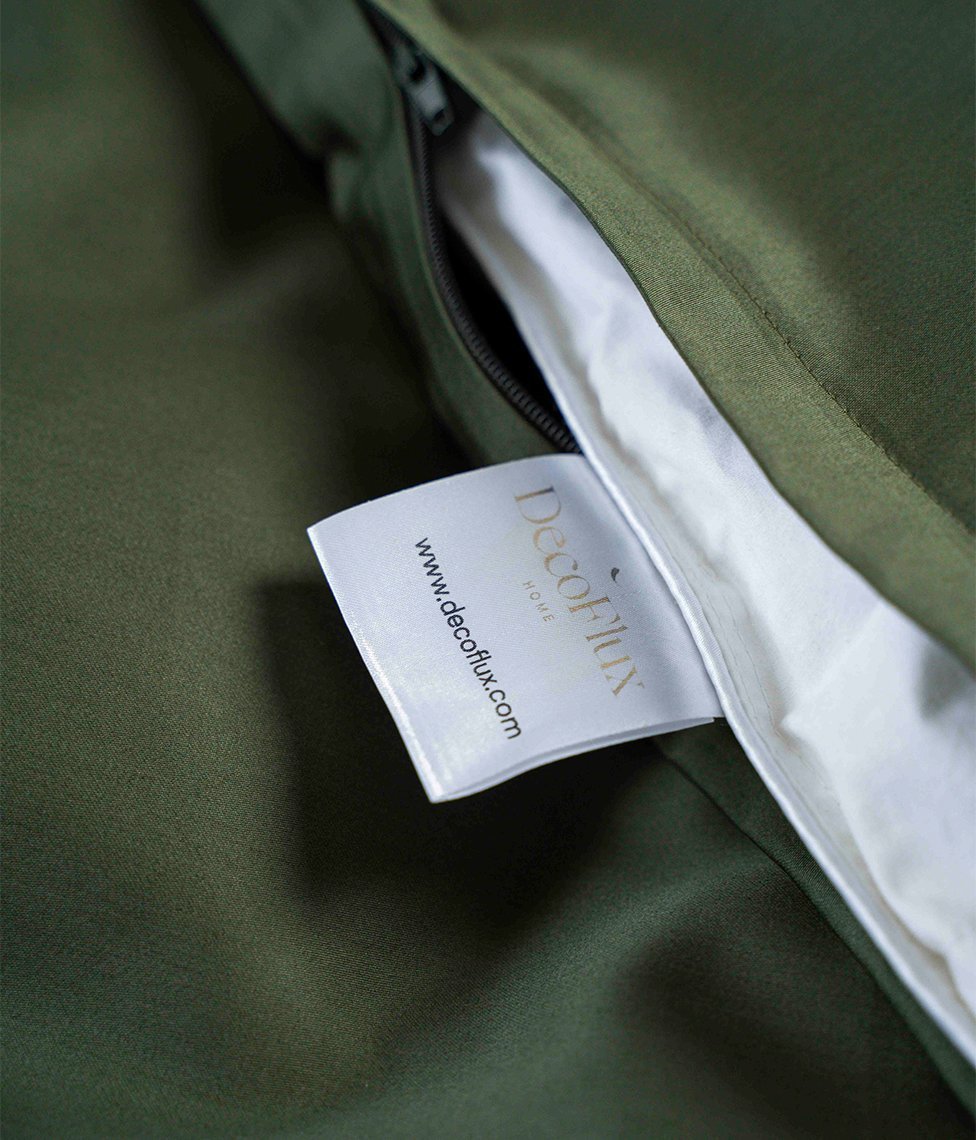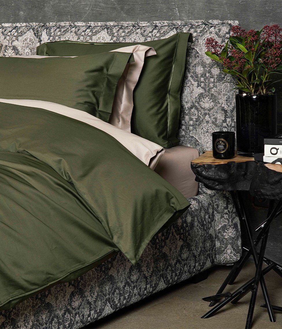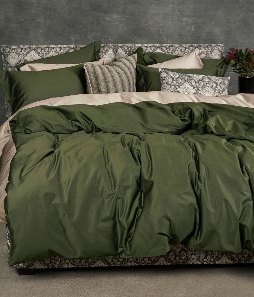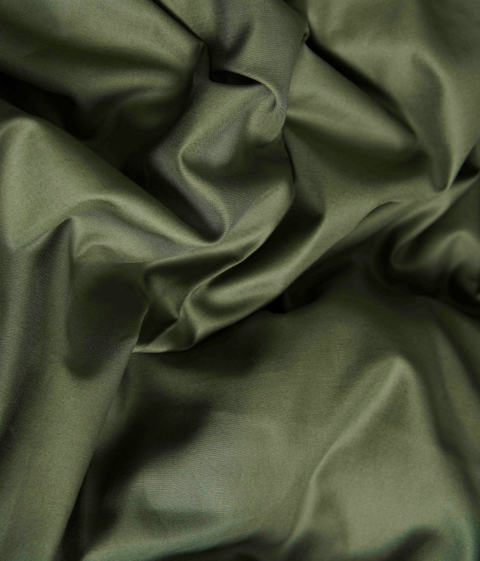 Piesātinātas zaļas sūnu krāsas satīna spilvendrāna, pieejama ar un bez dekoratīvi nošūtām maliņām. To var izmantot atsevišķi vai papildināt satīna gultas veļas komplektus.