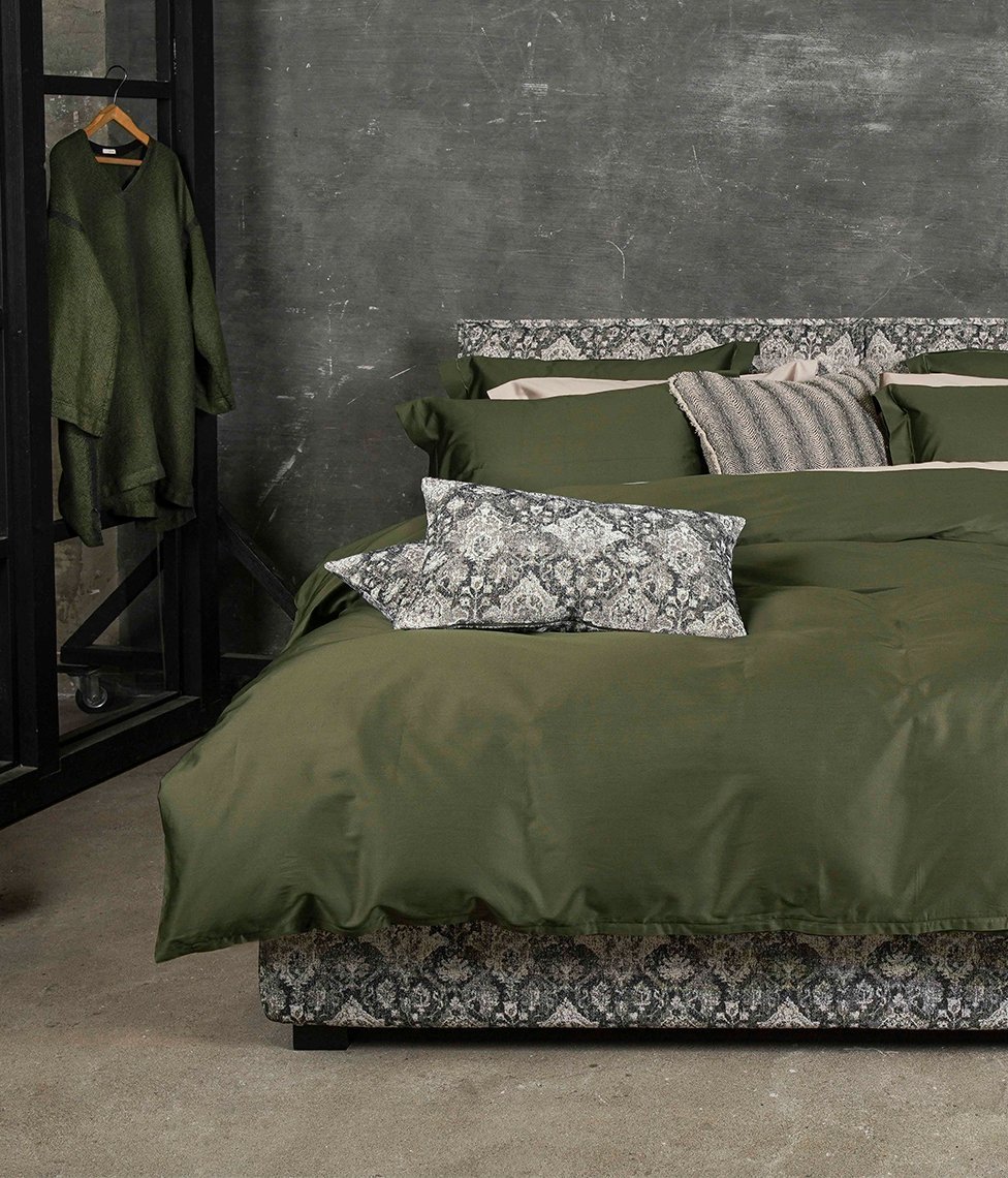 Piesātinātas zaļas sūnu krāsas satīna gultas veļa guļamistabā ienesīs relaksācijas sajūtu. Lieliski piemērota jebkuram interjeram.